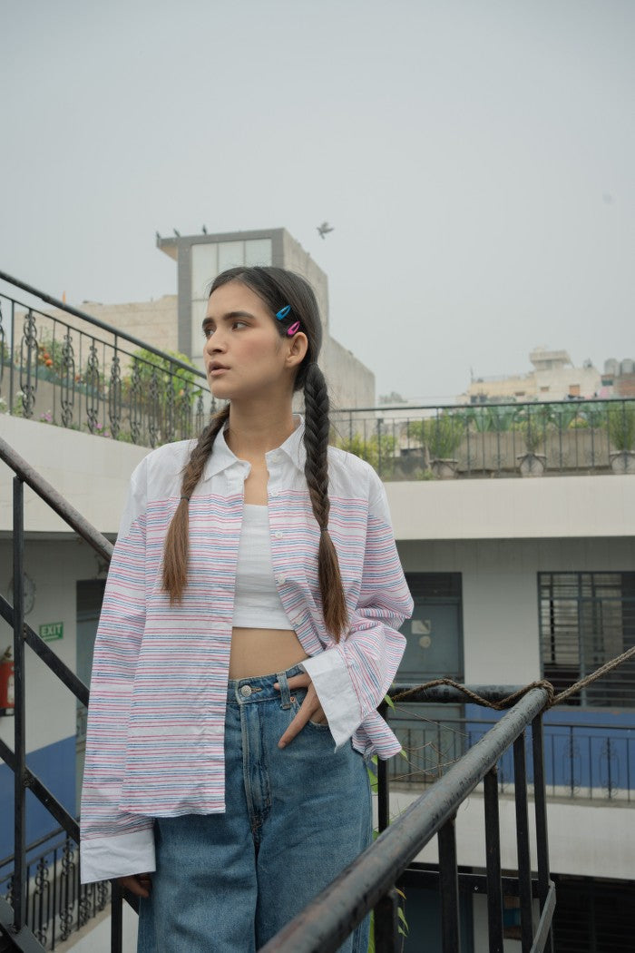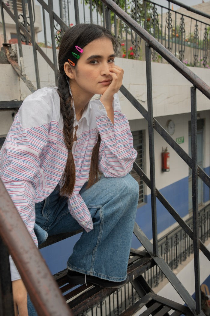 Swaroop Exclusive Design. English Shirt is a marriage between Indian textile and modern silhouette.The fabric is hand block printed by the skilled artisans of Jaipur.