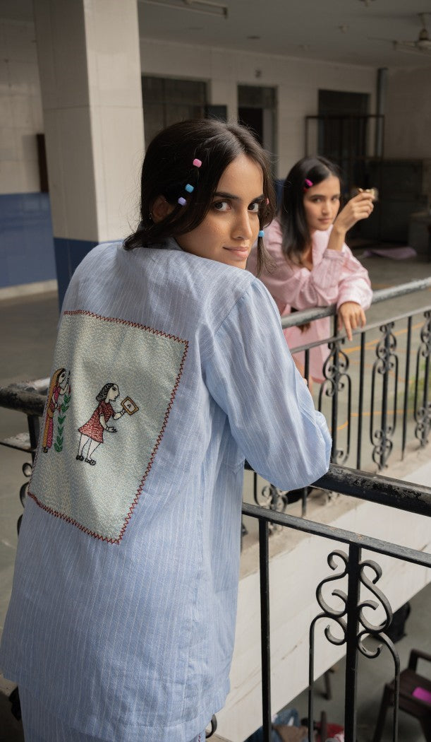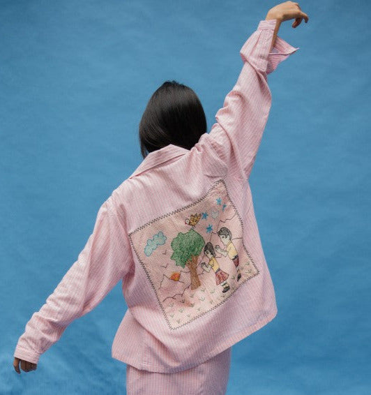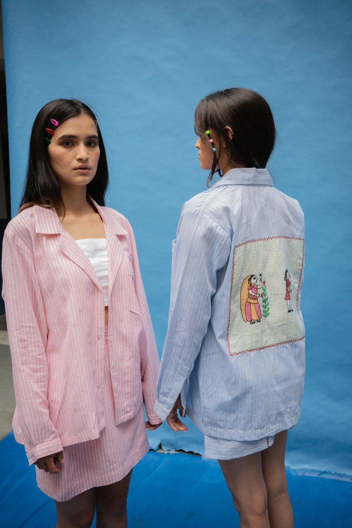 Swaroop Exclusive Design. Featuring an 'Assembly skirt' can be paired with handcrafted “Assembly shirt”. Crafted in striped cotton fabric.
