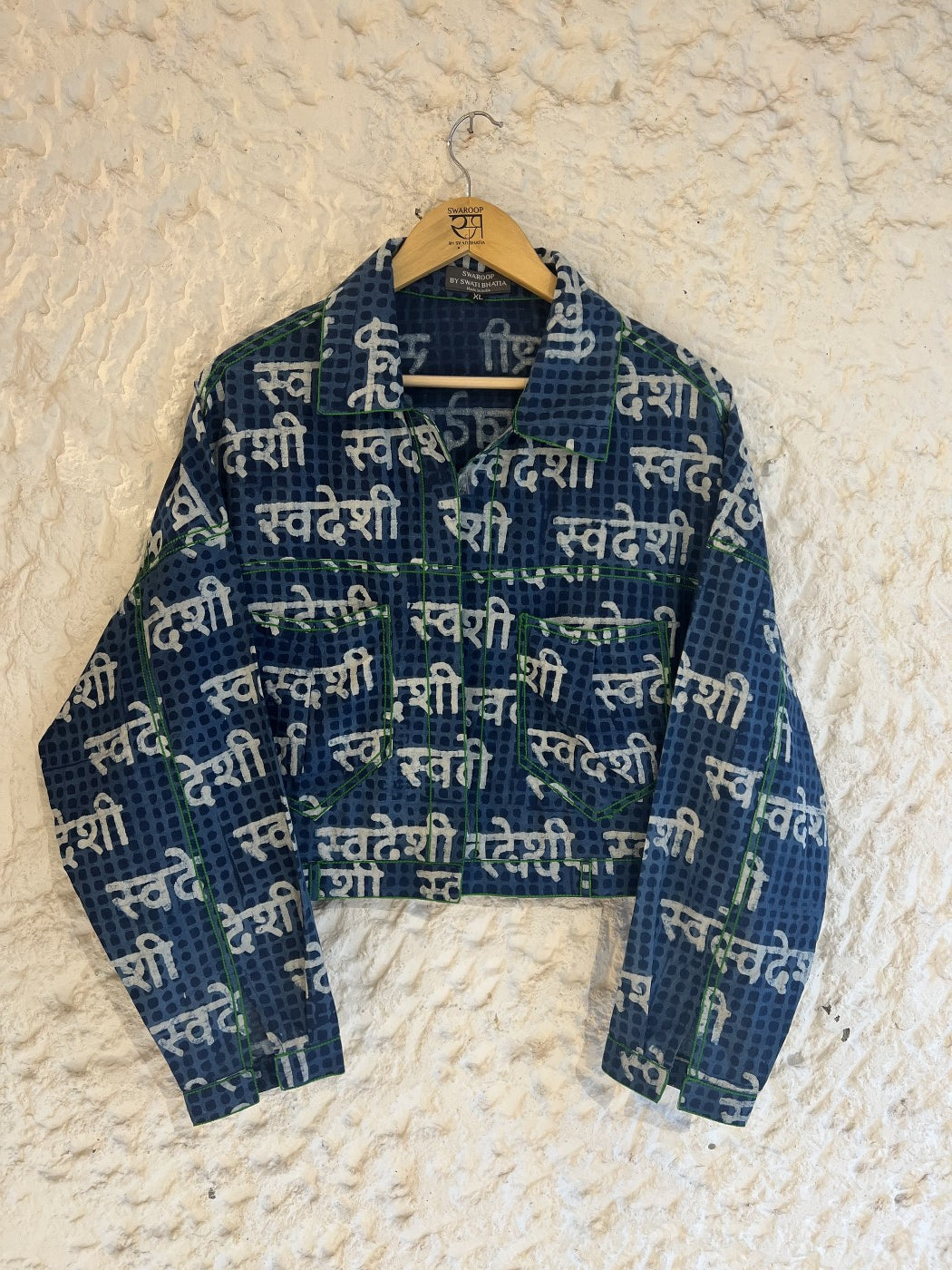 Swaroop Exclusive Design. Featuring a front open jacket in our signature स्वदेशी block print in cotton base enhanced with the chain stich. Crafted in a comfortable fit. Perfect for your summer outings.
