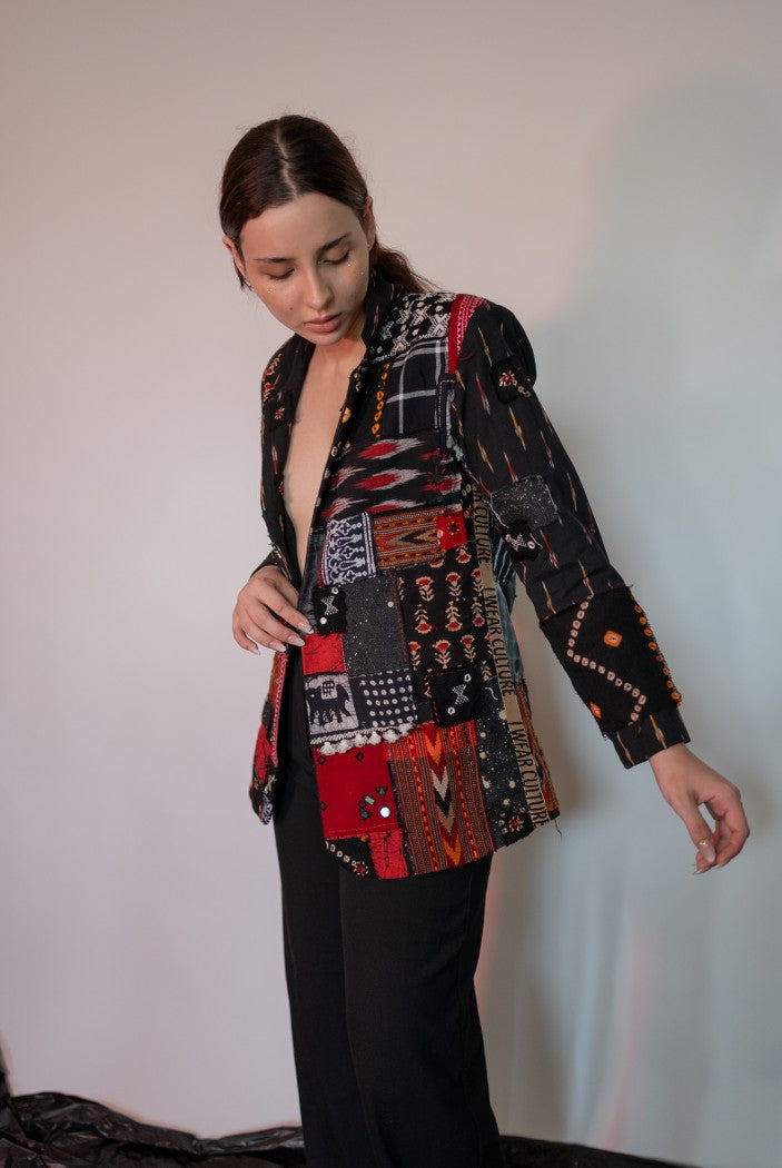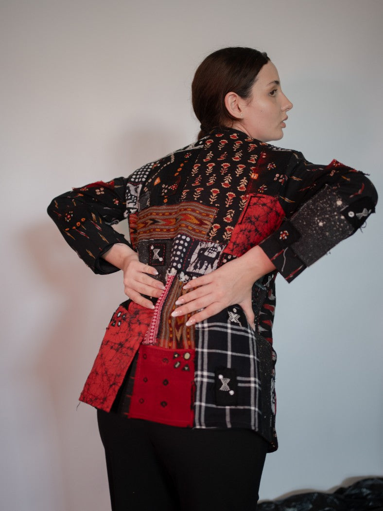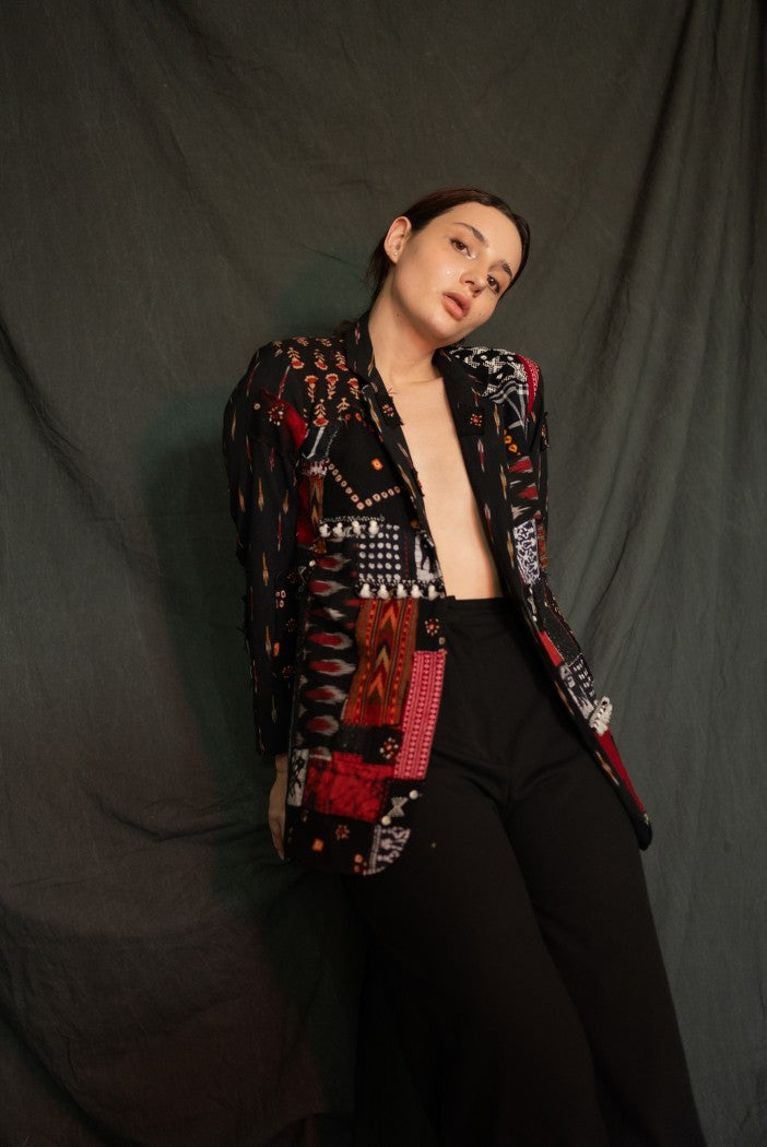 Note: Due to the handmade nature of the patchwork, each blazer may have slight variations in the pattern, making it even more unique.