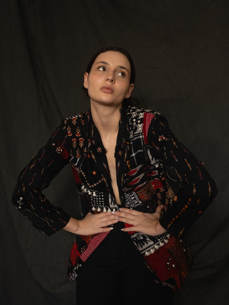 From the mesmerizing patterns of Ikkat and Bandhani to the exquisite embroidery of Kutch and the timeless elegance of Kullu, this blazer is a tapestry of artistry. With every wear, you not only embrace the heritage of Indian crafts but also empower women with confidence and grace, making a bold statement that celebrates the fusion of tradition and modernity.