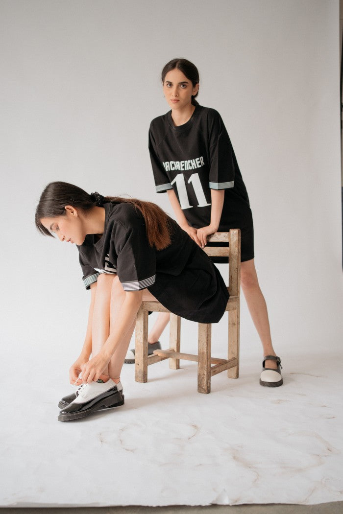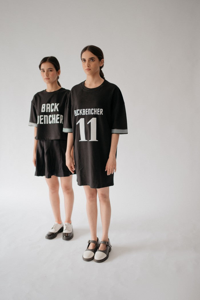 Swaroop Exclusive collection. Were you a backbencher? Sitting alone in your own zone thinking dreaming & creating. Then this T-shirt dress is for you! Flaunt it and recall your school days.