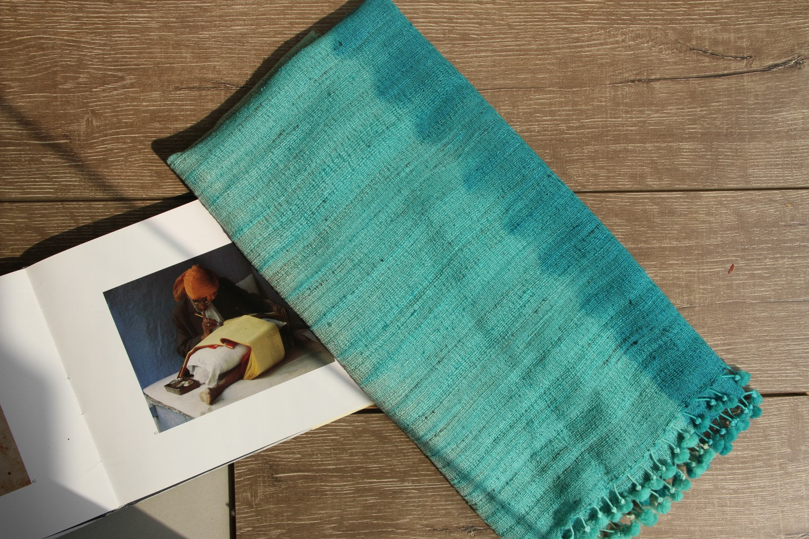 Swaroop Exclusive Design. Handloom ombre stoles in silk wool base have been hand-woven by the weavers of Bhujodi, Gujarat using their traditional techniques passed down from generation to generation. Adorned with handmade tassels.