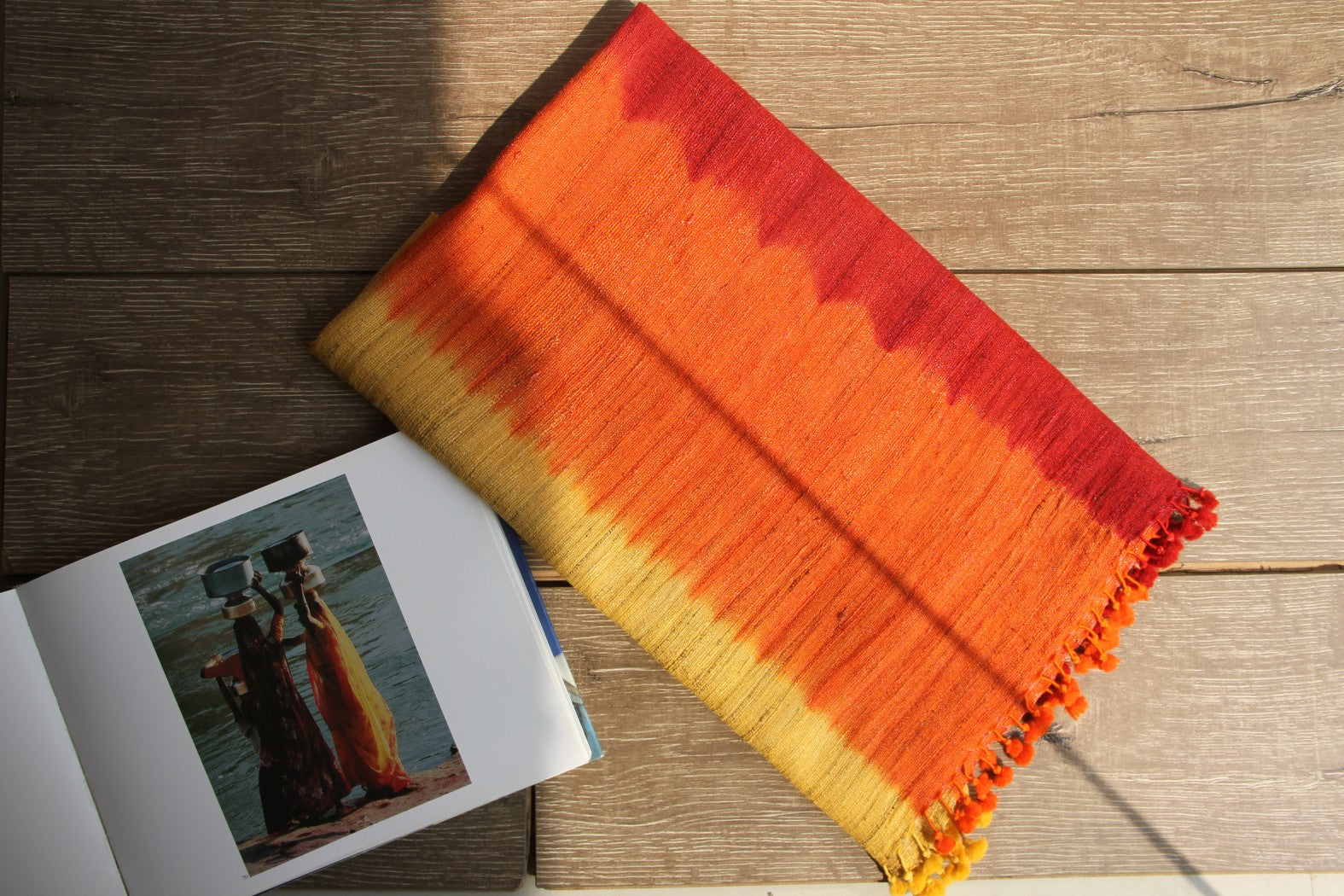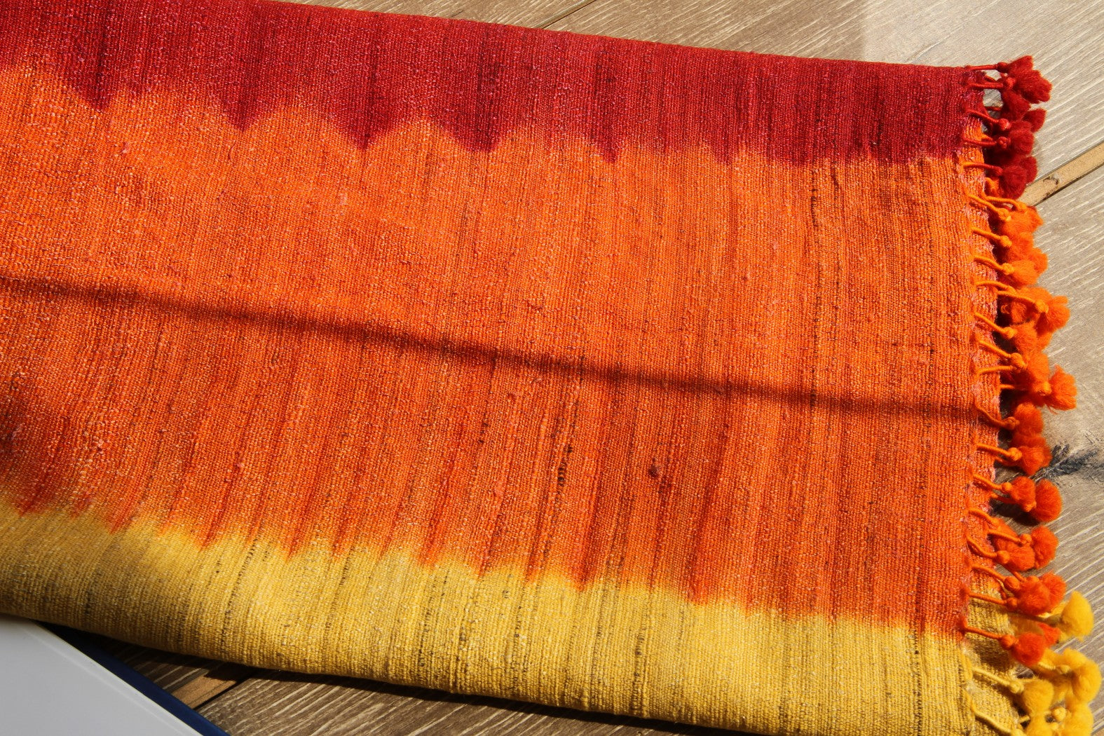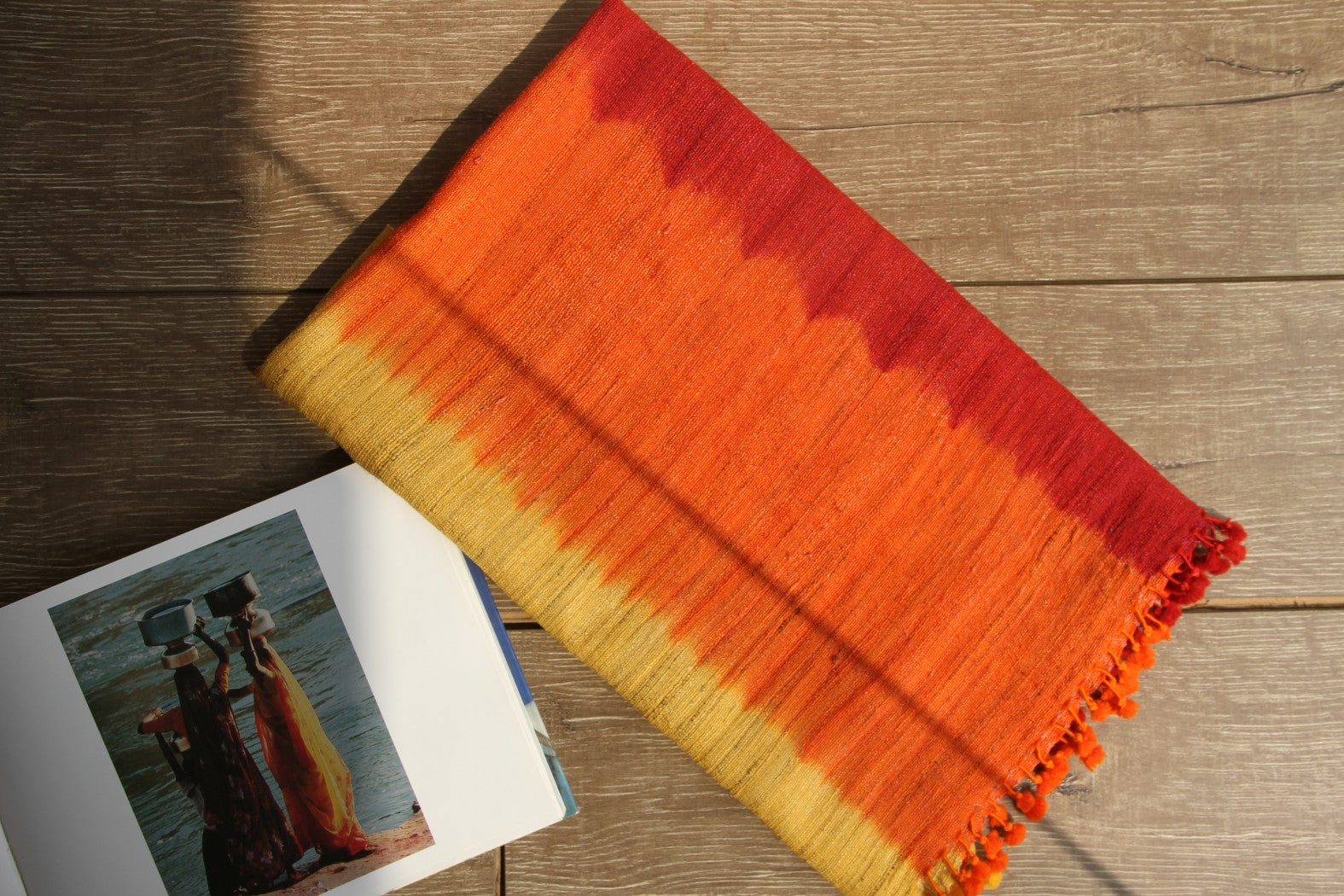 Swaroop Exclusive Design. Handloom ombre stoles in Silk wool base have been hand-woven by the weavers of Bhujodi, Gujarat using their traditional techniques passed down from generation to generation. Adorned with handmade tassels.