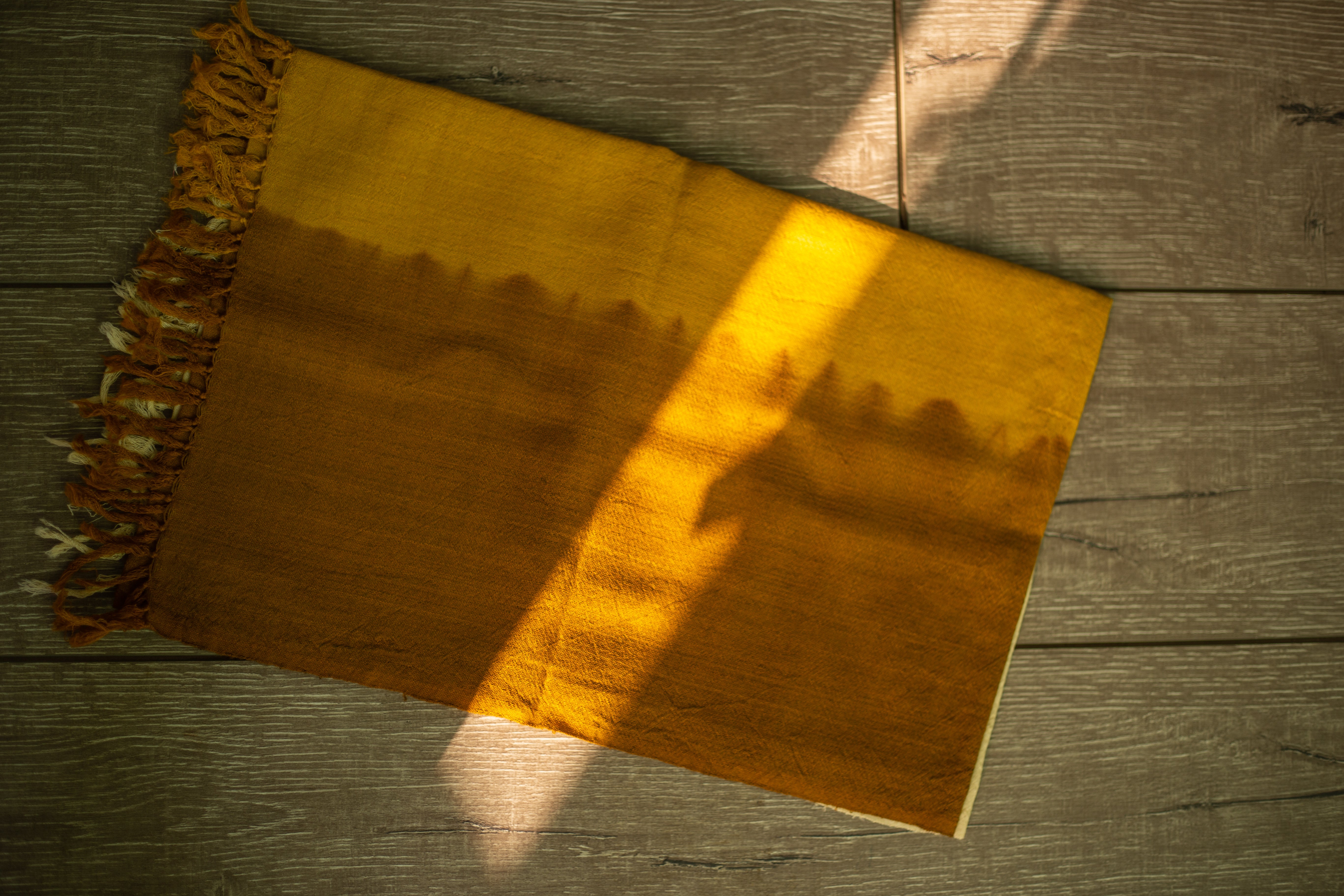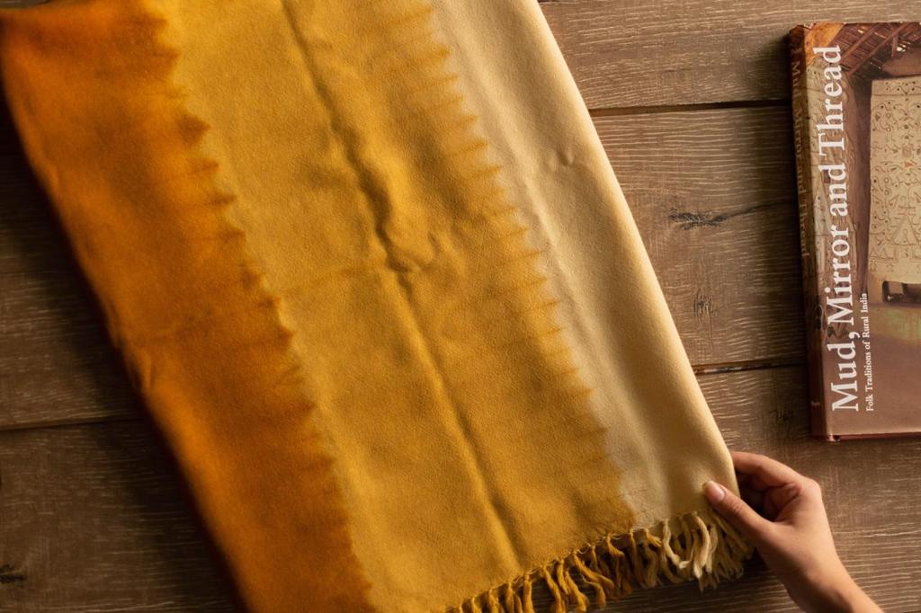 Swaroop Exclusive Design. Handloom ombre stoles in merino wool base have been hand-woven by the weavers of Bhujodi, Gujarat using their traditional techniques passed down from generation to generation. Adorned with handmade tassels.