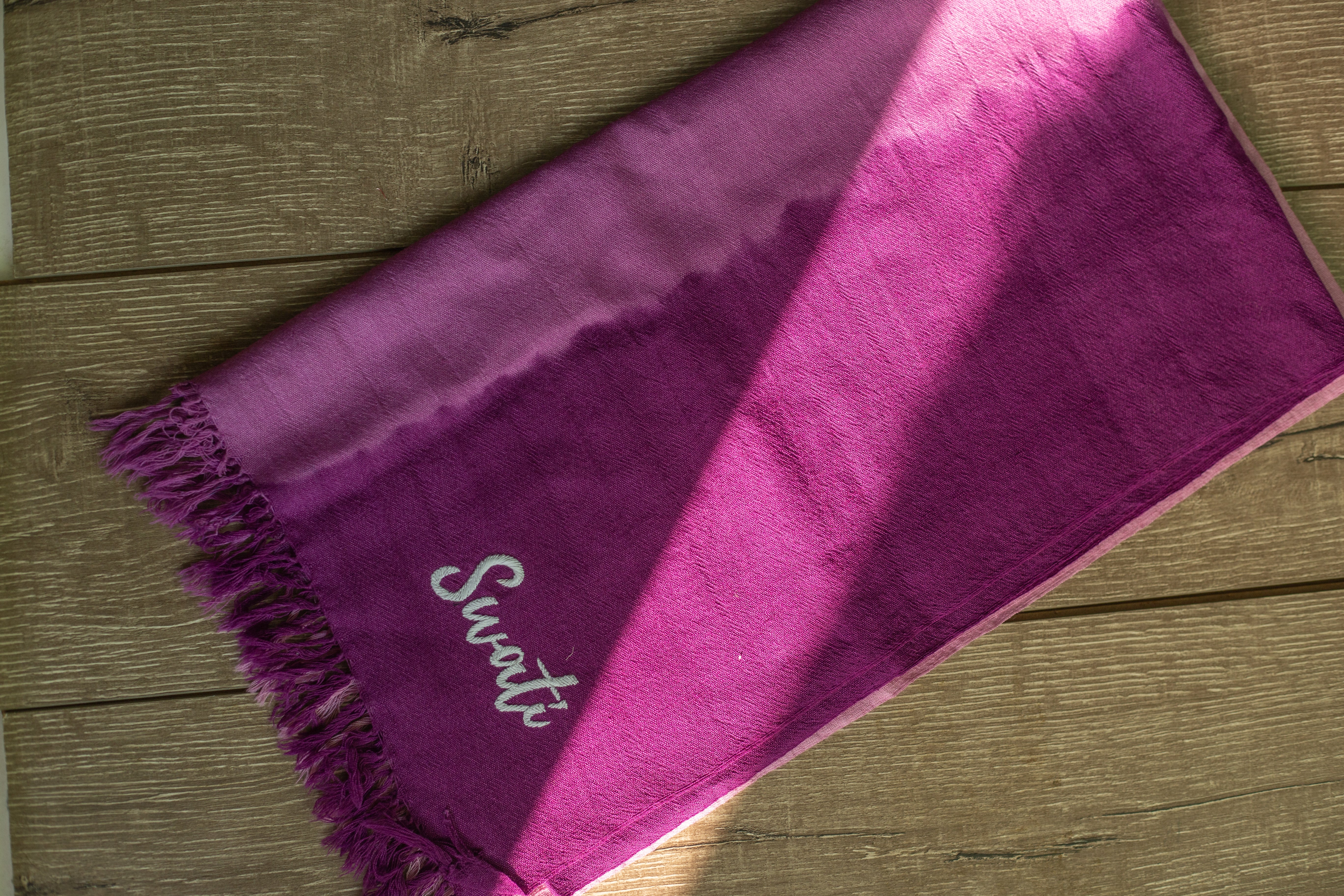 Customise your stole with Hand Embroidery Aari Work. After placing your order, Whatsapp us your Order Id and Name/Initials.