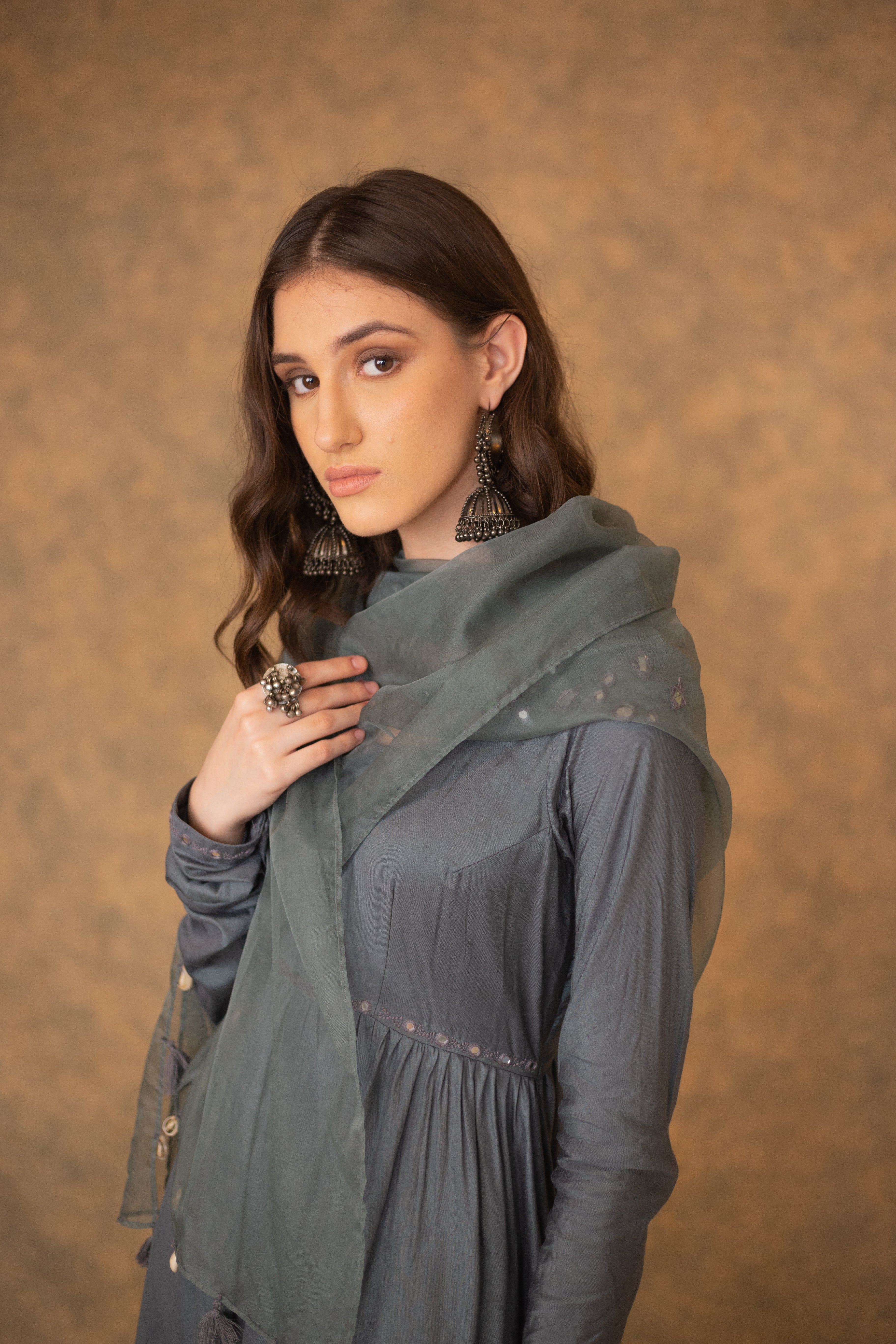 - Comes with embellished hand embroidered mirror work dupatta enhanced with tassels and shells.