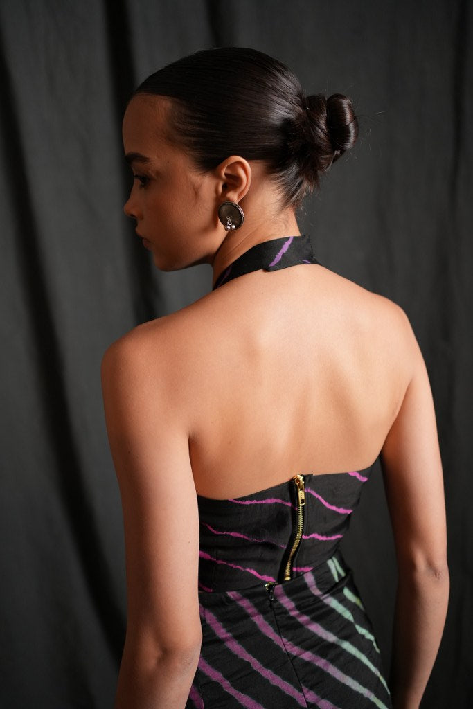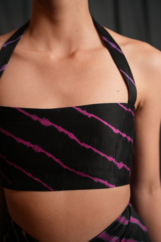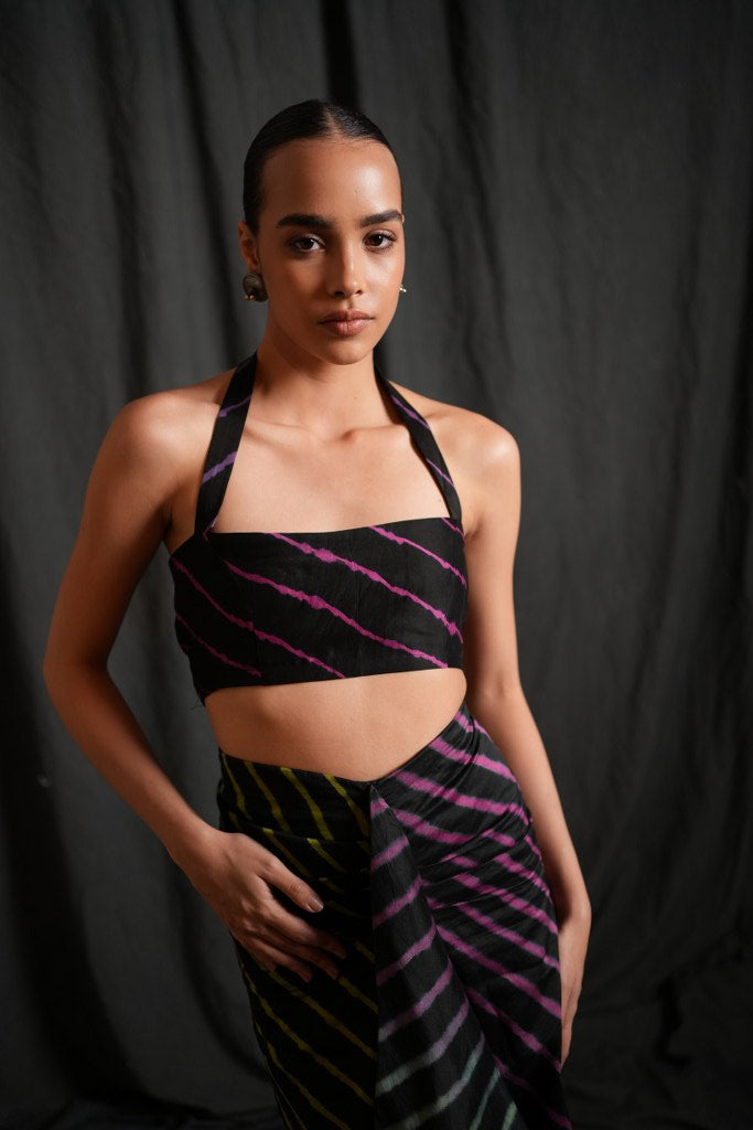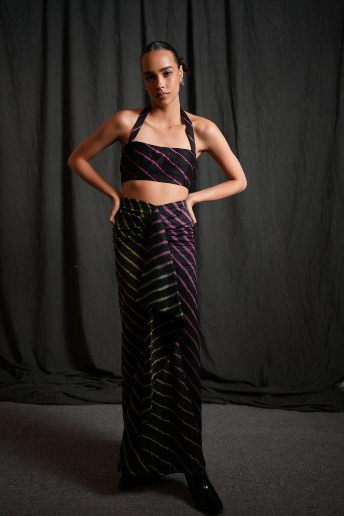 Discover the bold elegance of our Leheriya Chanderi Bustier, a standout piece from Swaroop Exclusive Designs. Crafted from authentic Leheriya Chanderi fabric by the artisans of Rajasthan, this bustier blend traditional artistry with contemporary flair. Featuring a sleek back zip closure for a secure and flattering fit with halter neck. Perfect for festive occasions or a chic evening look, this versatile bustier pairs beautifully with our Chanderi skirt, Chanderi Bell bottom pants.