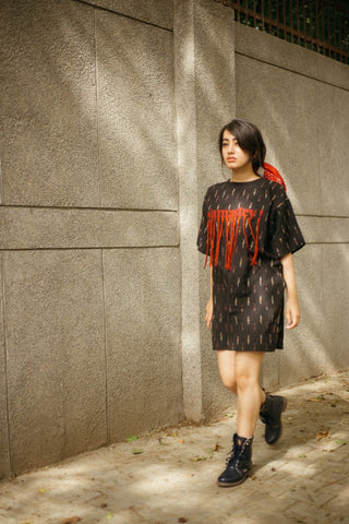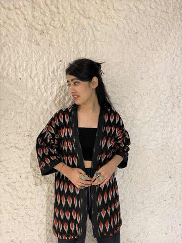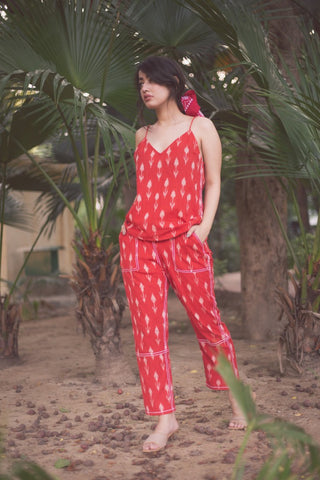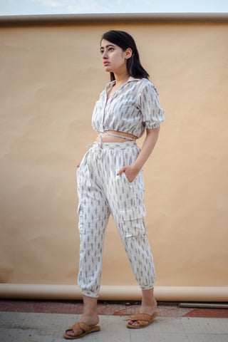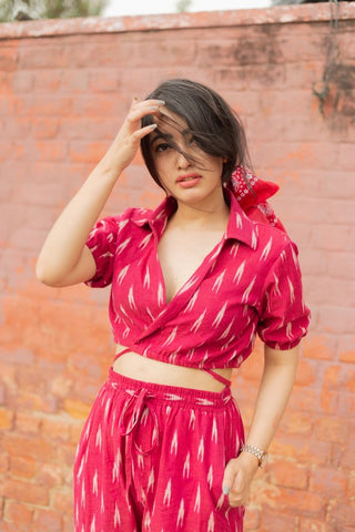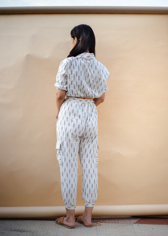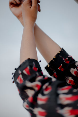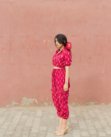 The colorful yarns are woven into patterned textile to create beautiful Ikat fabrics. The collection is a combination of modern-day silhouettes with the vibrance of Ikat handloom Weaving. The line is adorned with pieces of high fashion and a cornucopia of Indian art forms like joggers, wrap-arounds, t-shirt dress and much more!
