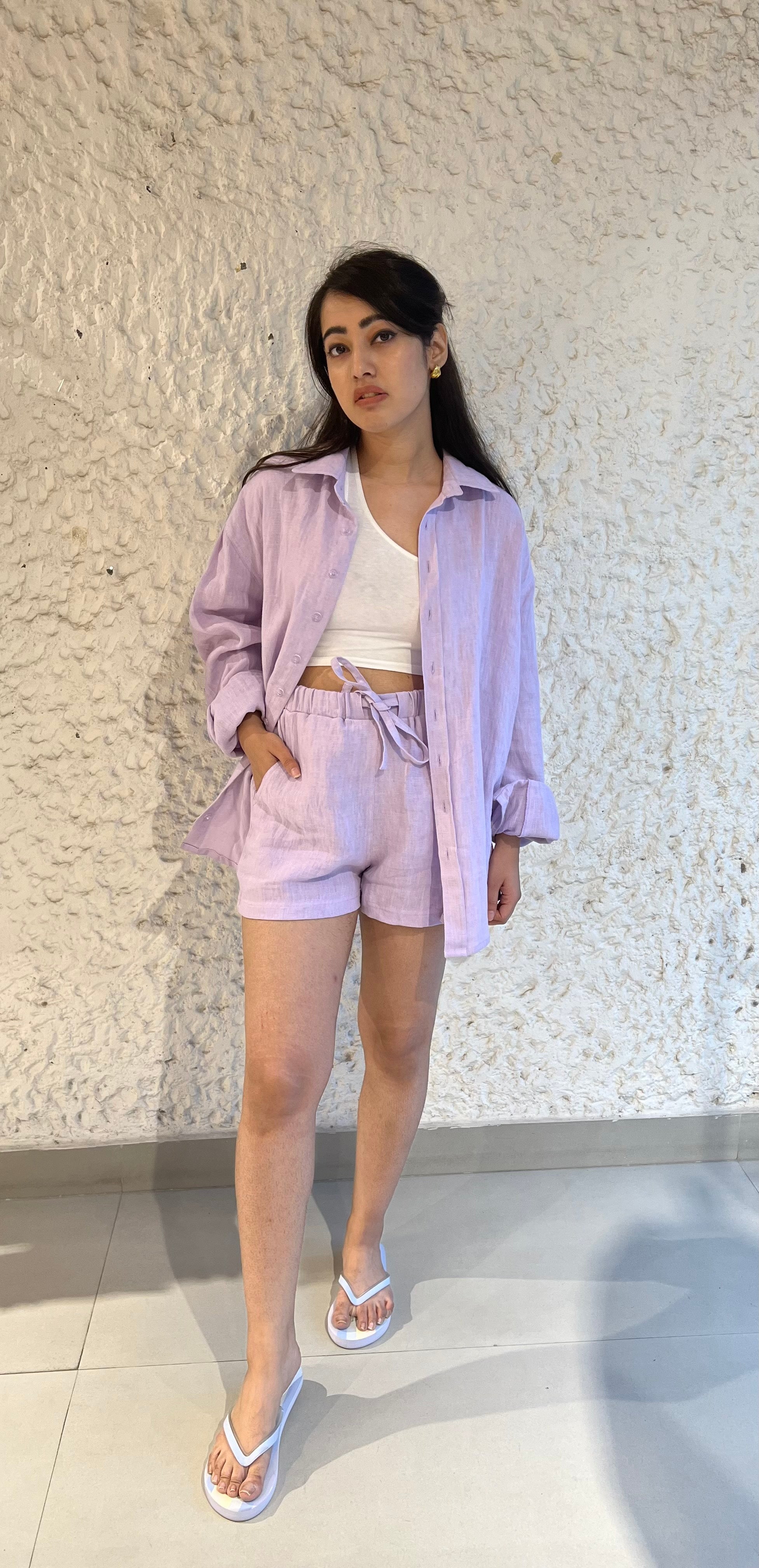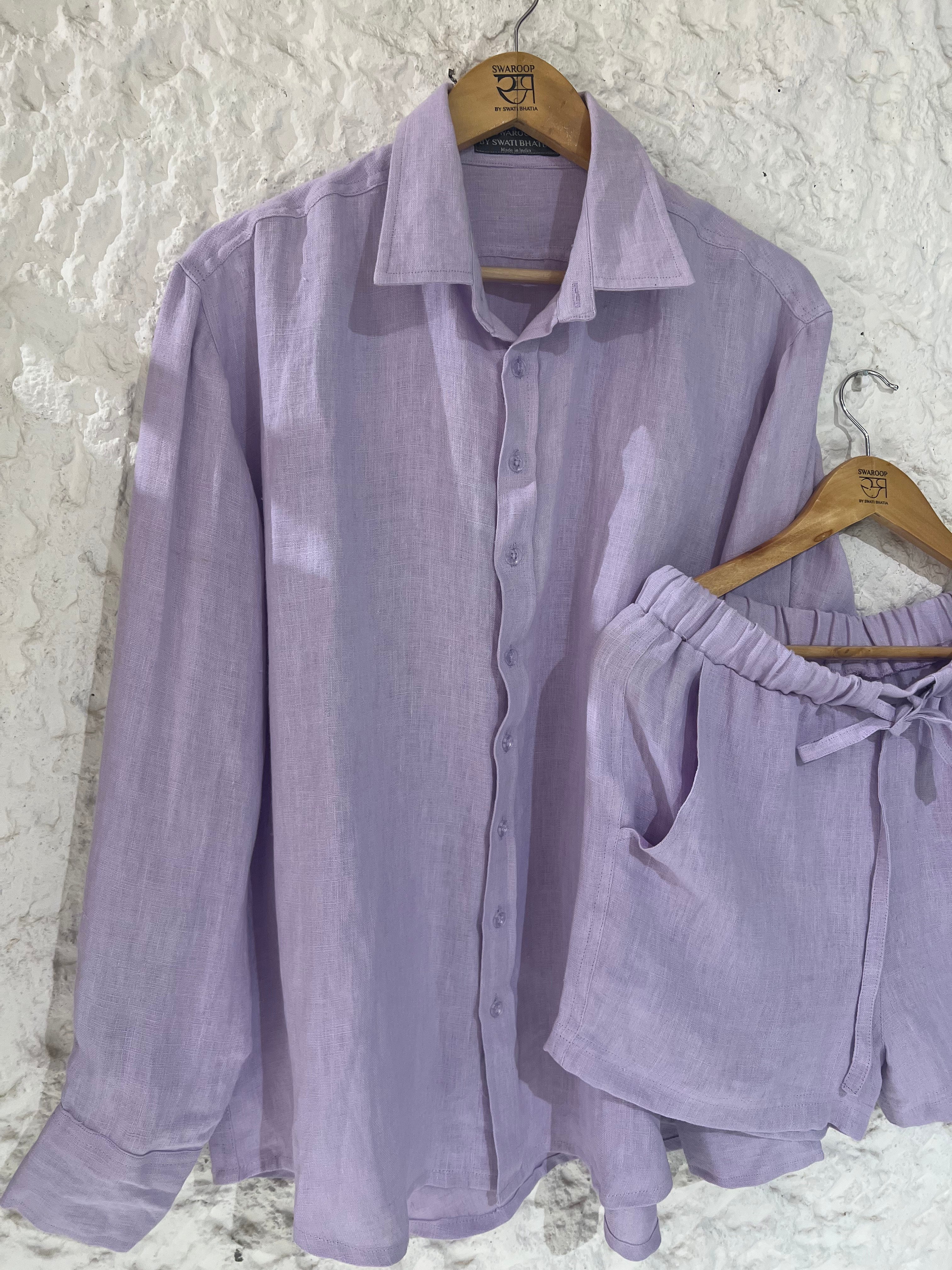 Swaroop Exclusive Design. This co-ord set features a button-down cotton shirt paired with high-waisted shorts. Comfortable yet cool, these matching sets make for perfect summer vacation outfits.