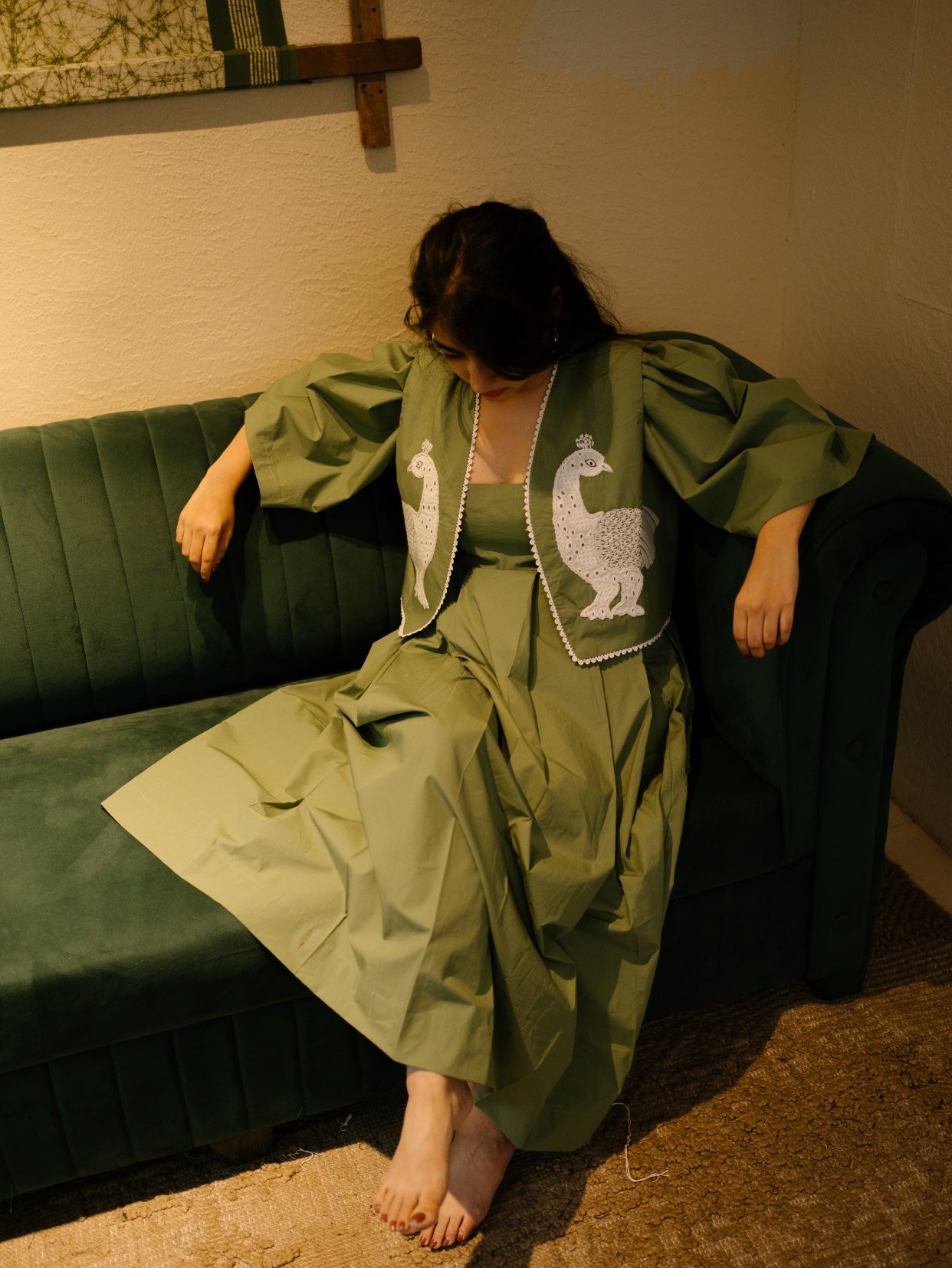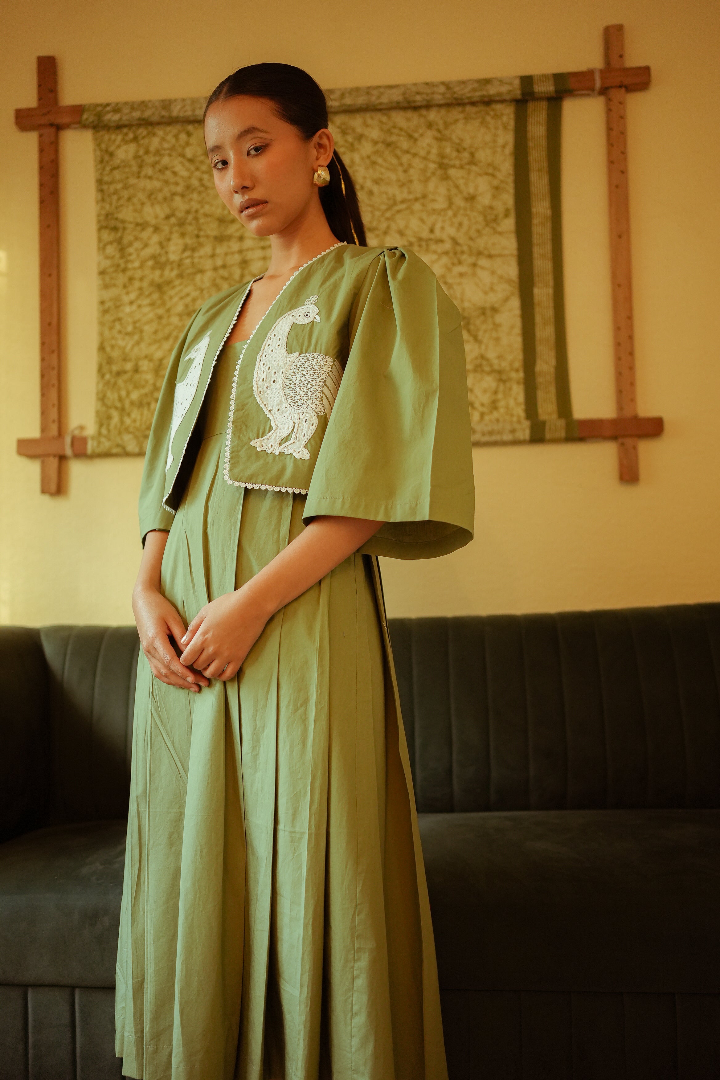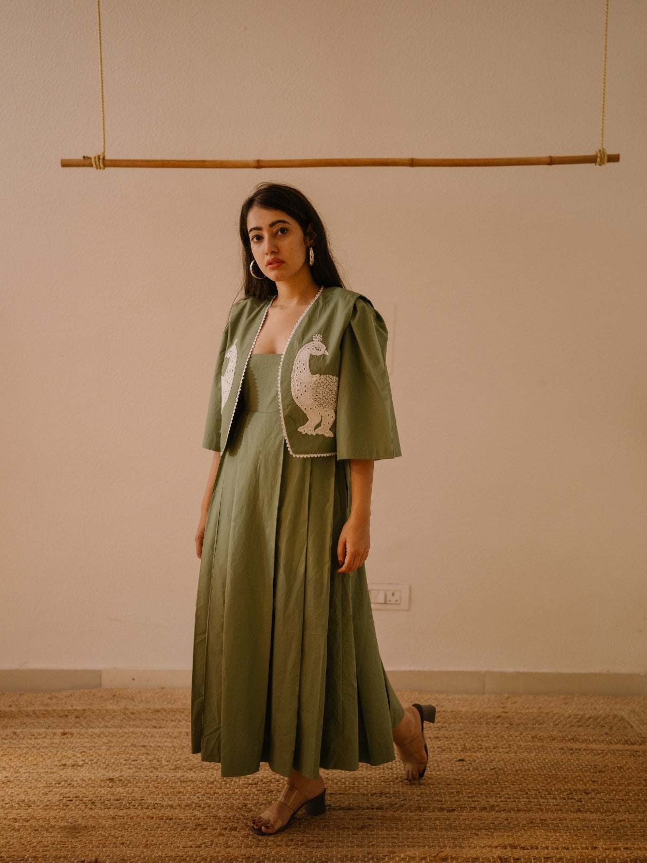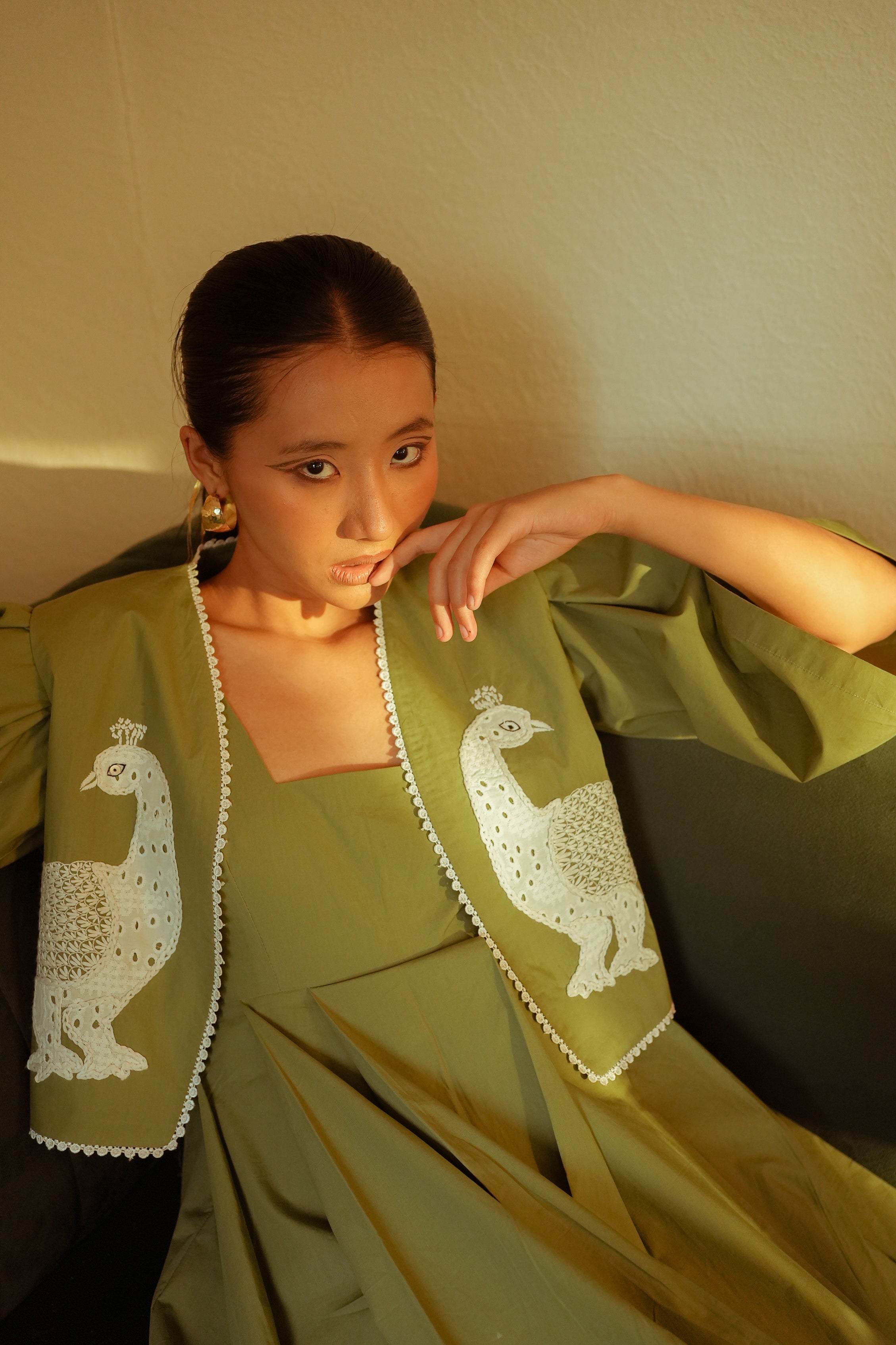 Discover the enchanting allure of Jaipur through Swaroop's exclusive collection. Introducing our Mayuri jacket embellished with intricate schiffli fabric patchwork and aari thread embroidery. Each piece is detailed with delicate lace accents.