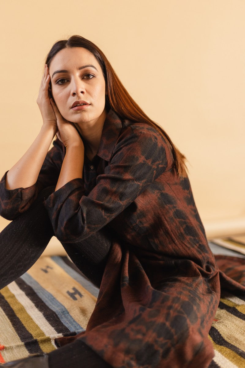 Swaroop Exclusive Design. The name is a classic tie and dye kurta. The fabric is handwoven by the weavers of kullu using their traditional techniques. The name has shirt collar and a placket in the front.