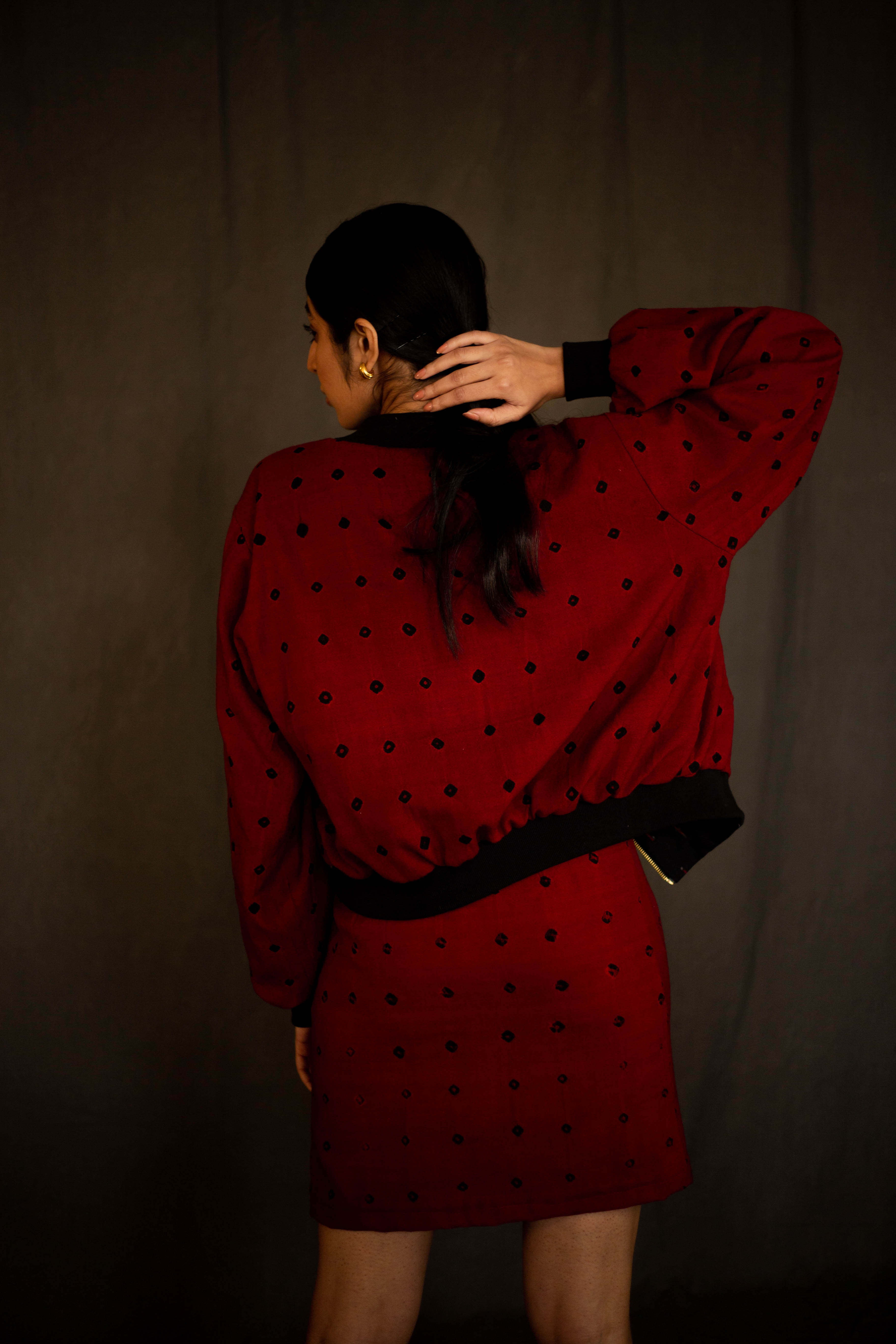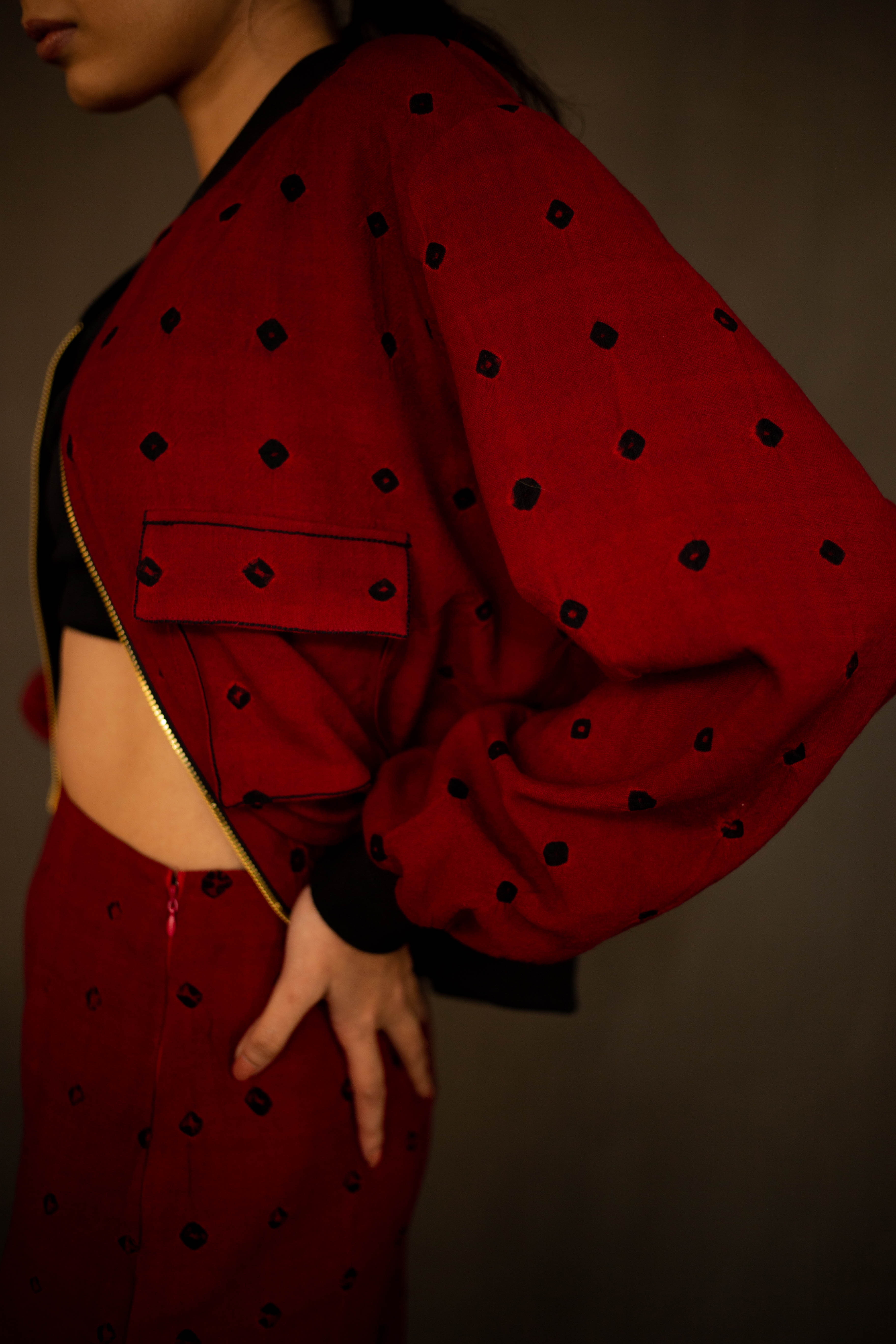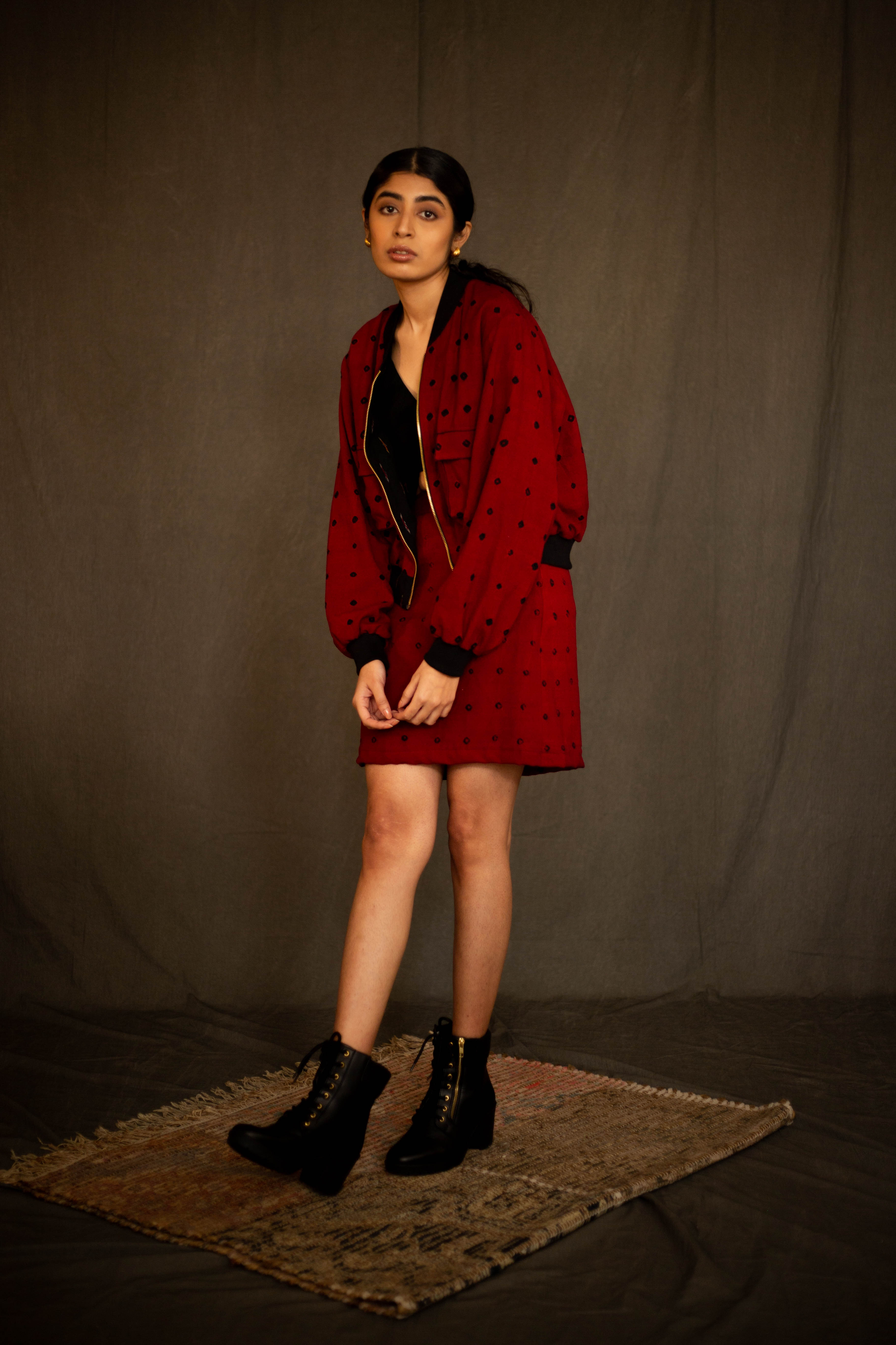Swaroop Exclusive Design. “The Bandhani Co-ord Set” is a marriage between Indian textile and modern silhouette. The fabric is handcrafted by weavers of Gujarat using traditional techniques.