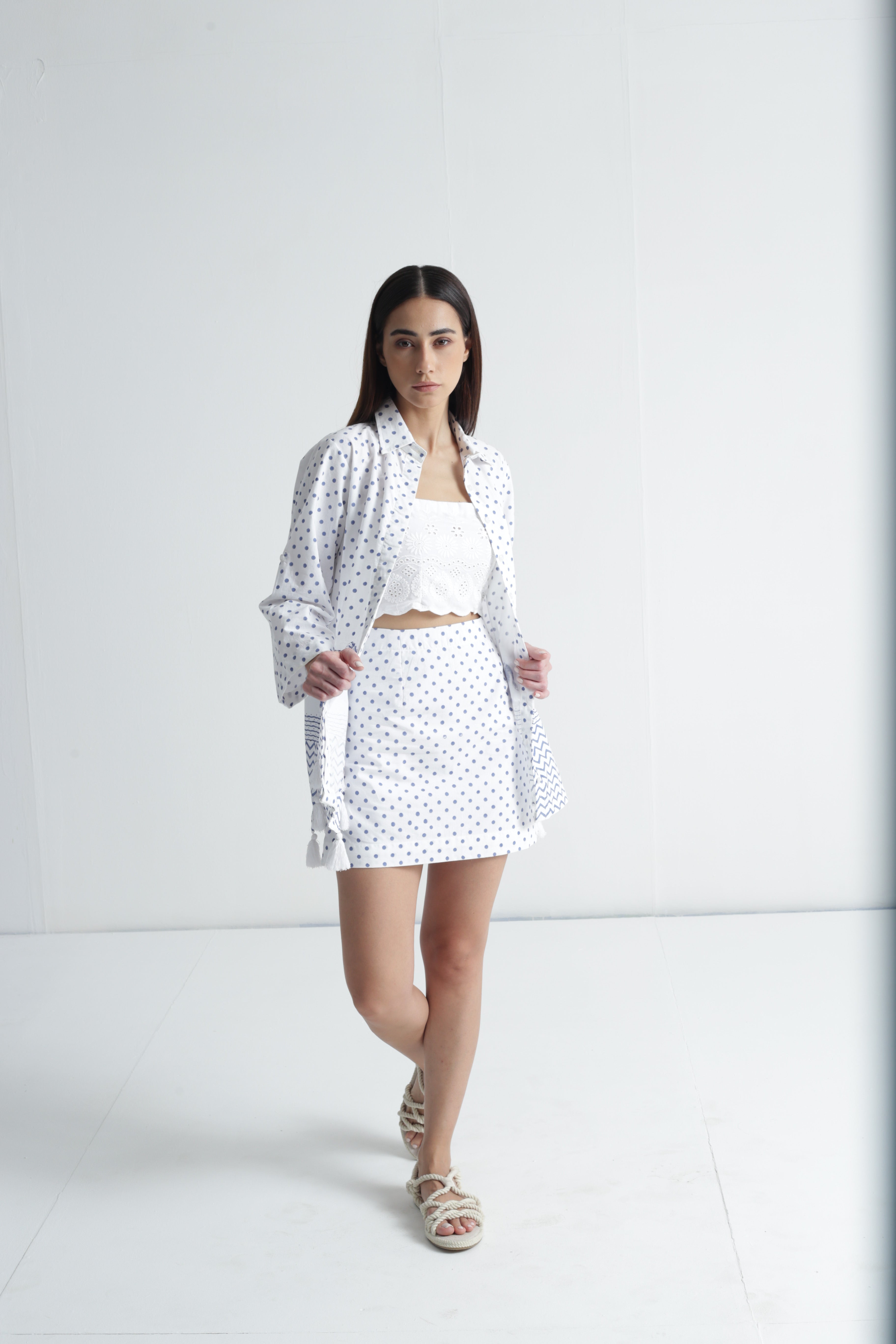 Swaroop Exclusive Designs. Featuring a high-waist Polka skirt with lining and invisible side zip fastening. Perfect for a casual occasion. Team it with a top or shirt for the perfect look.