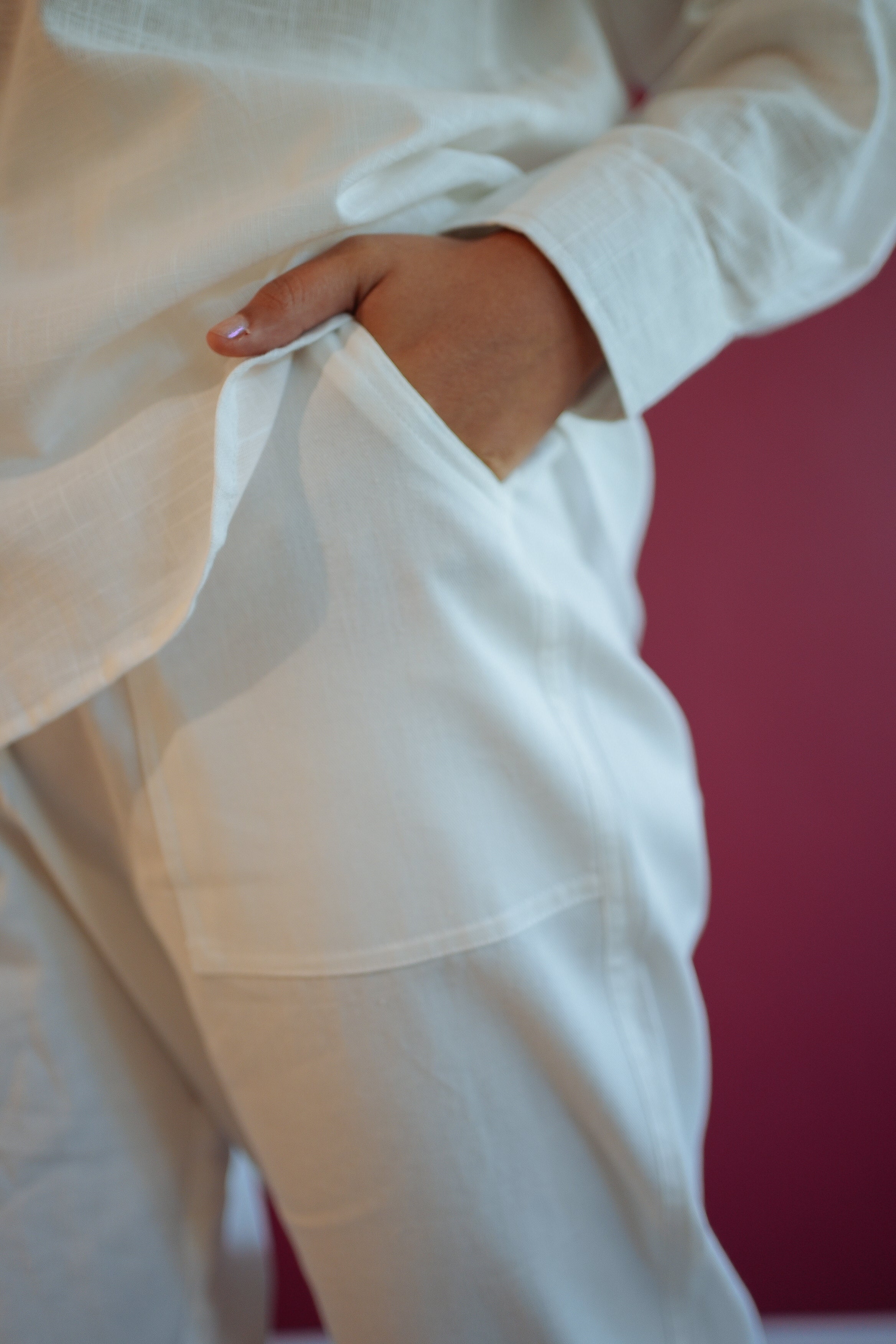 Swaroop Exclusive Design. Step out in comfort with our breezy cotton pant. These pants feature convenient side pockets and a full belted waistband, ensuring all-day comfort.