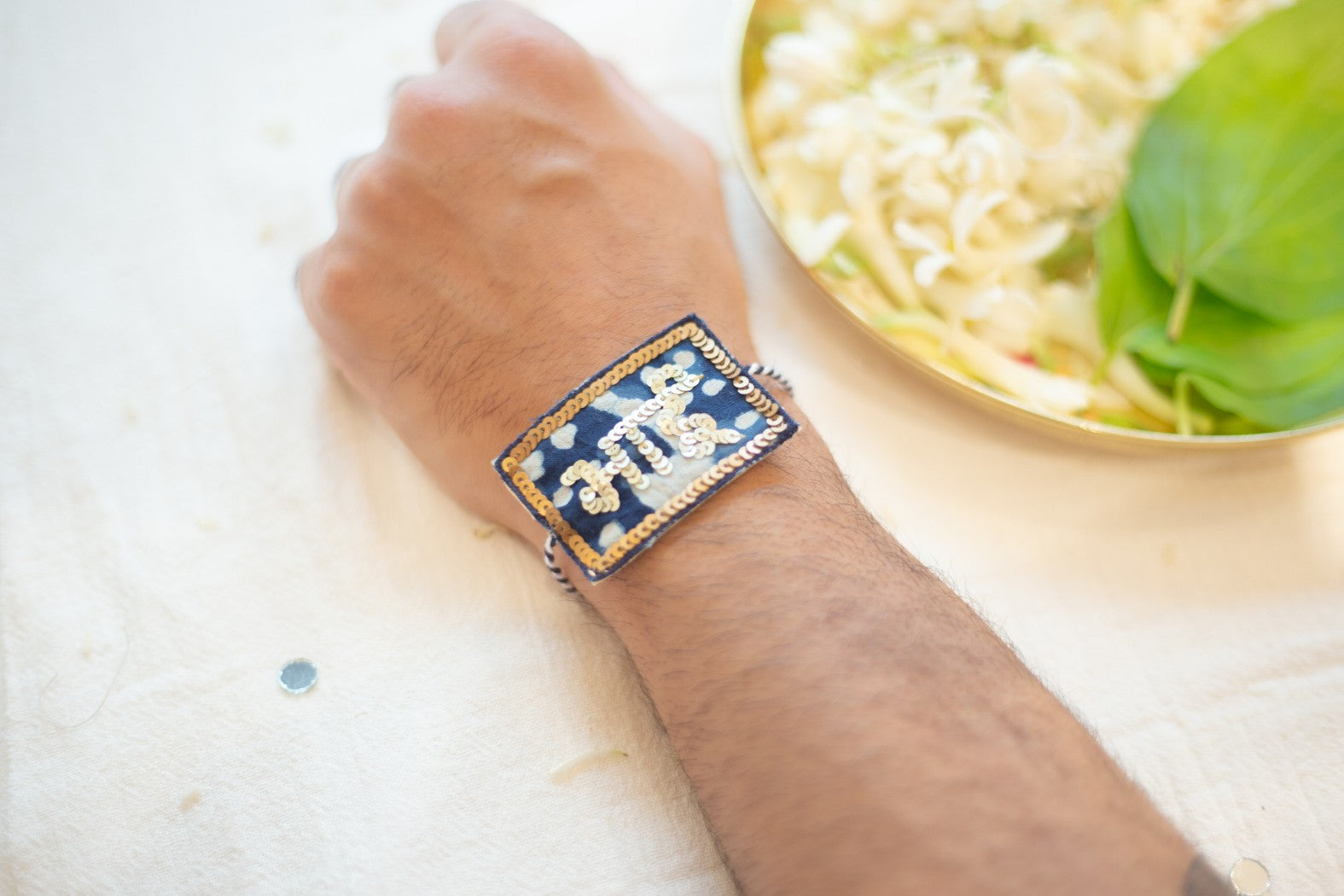 This Bhai rakhi is inspired by sequence work and hand embroidered by skilled craft person.