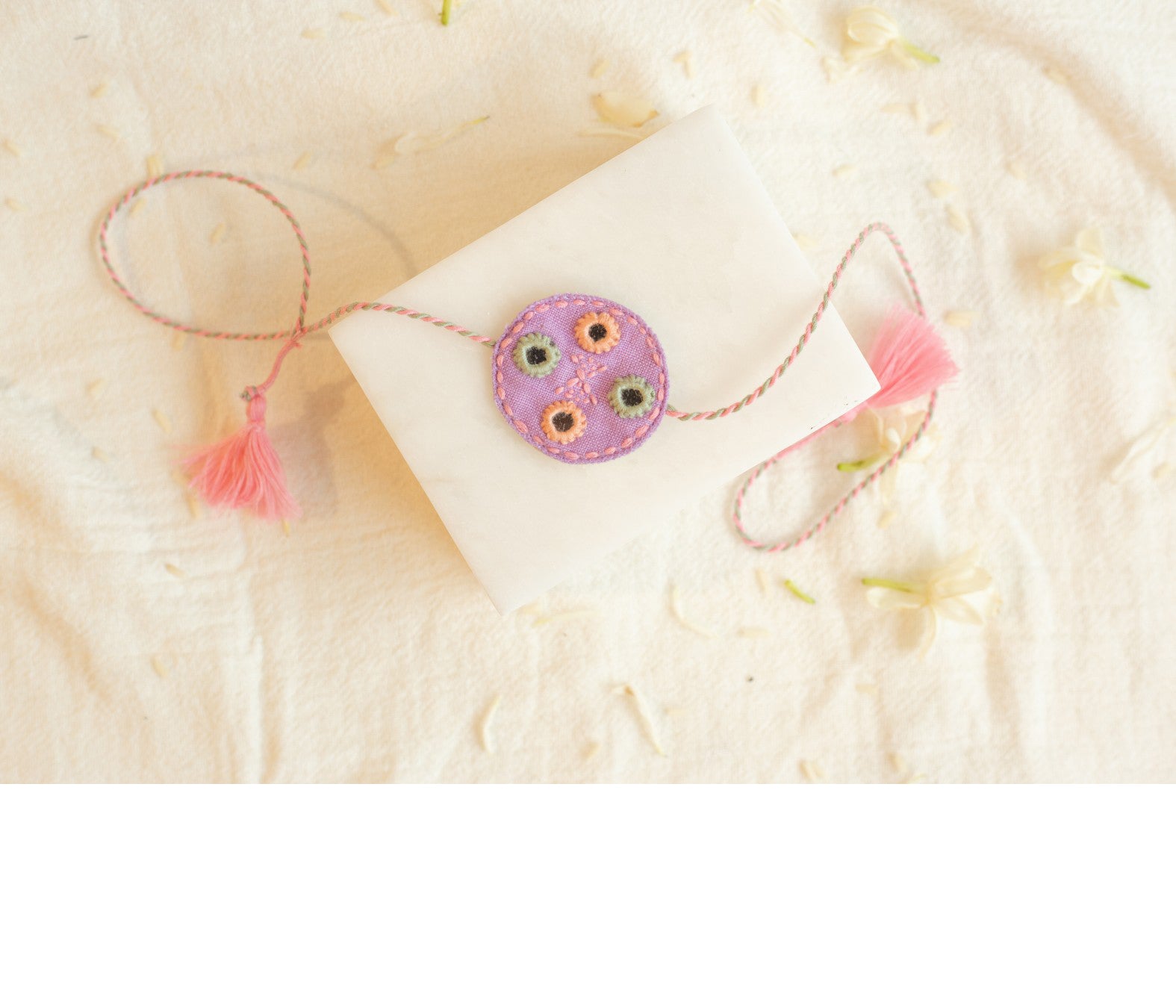 SWAROOP Exclusive Design.This Rakhi is inspired by mirror work of Kutch embroidery and handcrafted by skilled artisans.