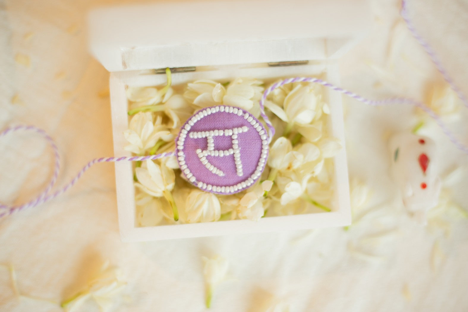 This patra rakhi is inspired by bead work and hand embroidered by skilled craft person. (Get your brother initials on our handmade rakhis).