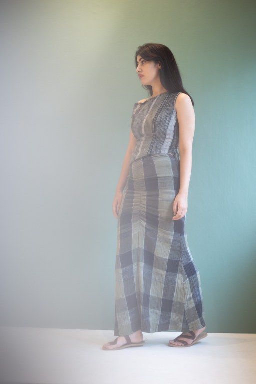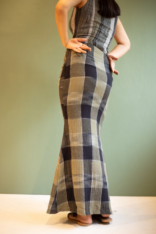 Elevate your wardrobe with our Check Skirt, a high-waisted design crafted from breathable cotton fabric. The skirt is beautifully detailed with front gathers and a side zip closure for a flattering fit. Comes with one shoulder Katha Top for an impeccable date night or casual party ensemble.