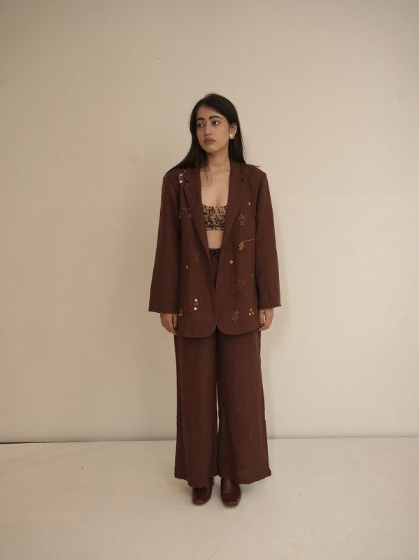 Introducing the Swaroop exclusive design: high-waisted viscose linen pants with side pockets, a full belt, and intricate kantha stitches on the pockets. With a comfortable fit for all-day wear, this piece pairs perfectly with our waistcoat and blazer, making it a must-have addition to your collection.