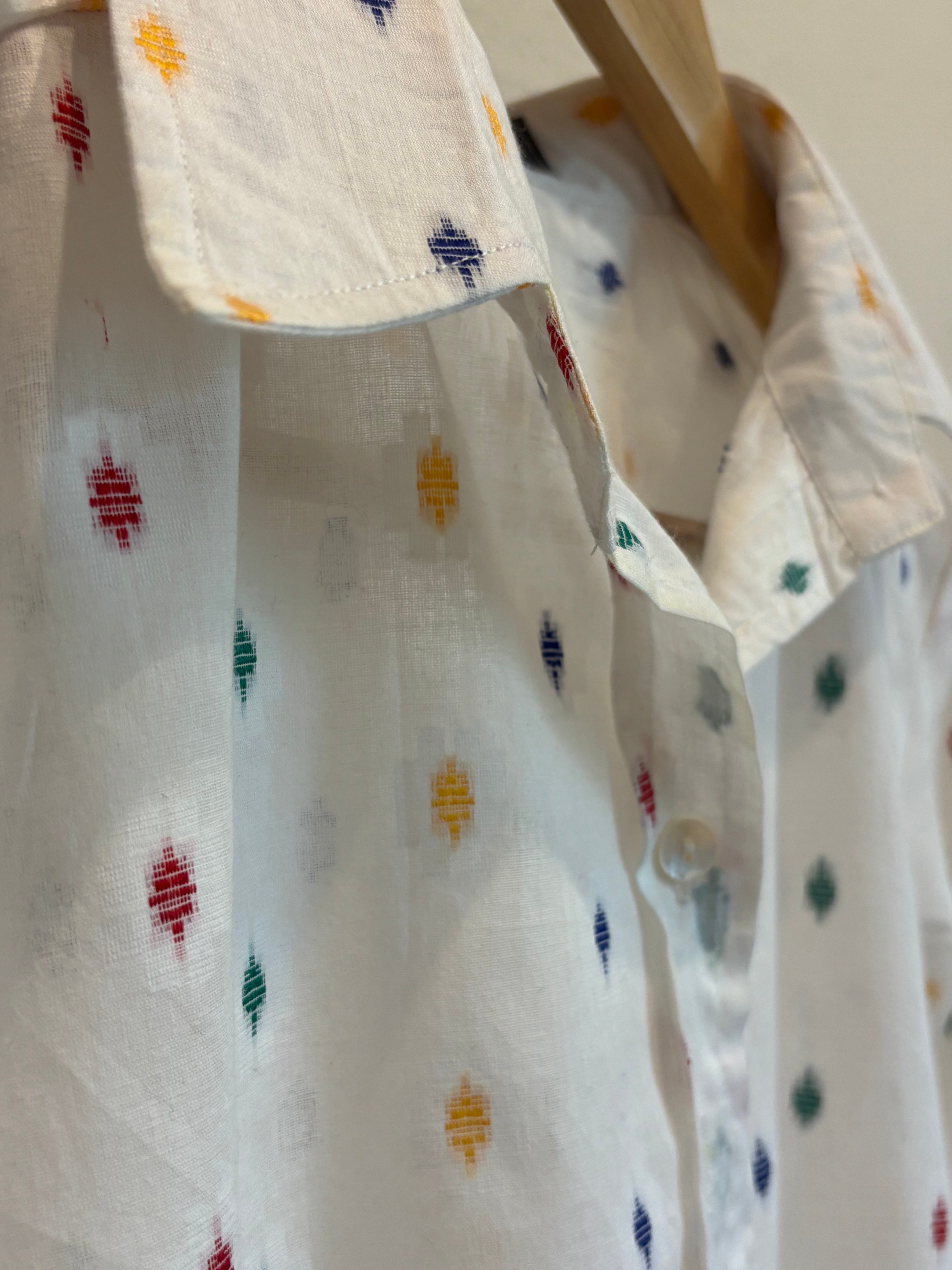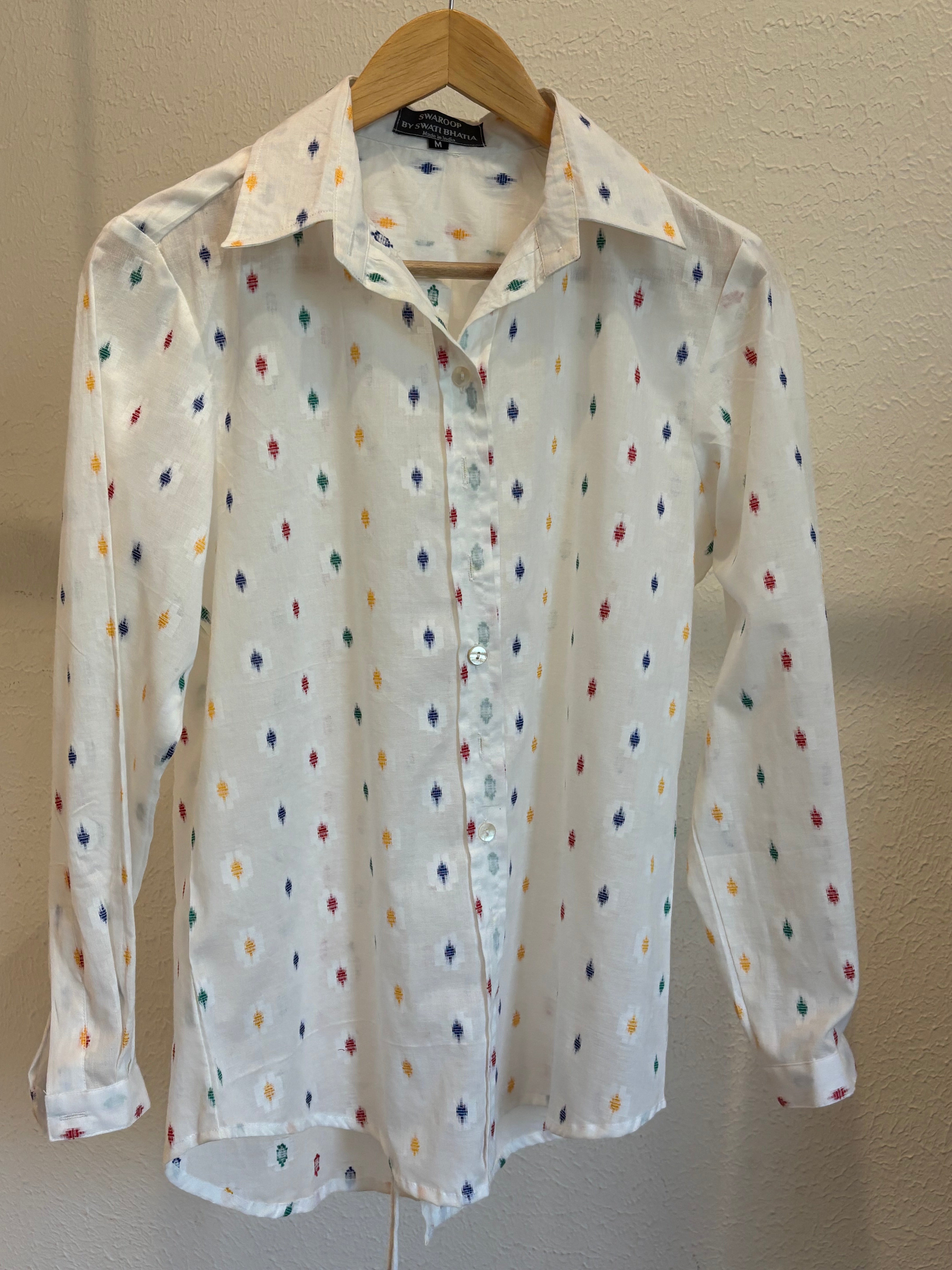 Swaroop Exclusive Design. Featuring a cotton shirt crafted from a dobby cotton fabric, boasting both round and high-low hemlines. This versatile piece is a must-have for your summer wardrobe, offering unparalleled style and comfort. Featuring a stylish back slit with Dori.