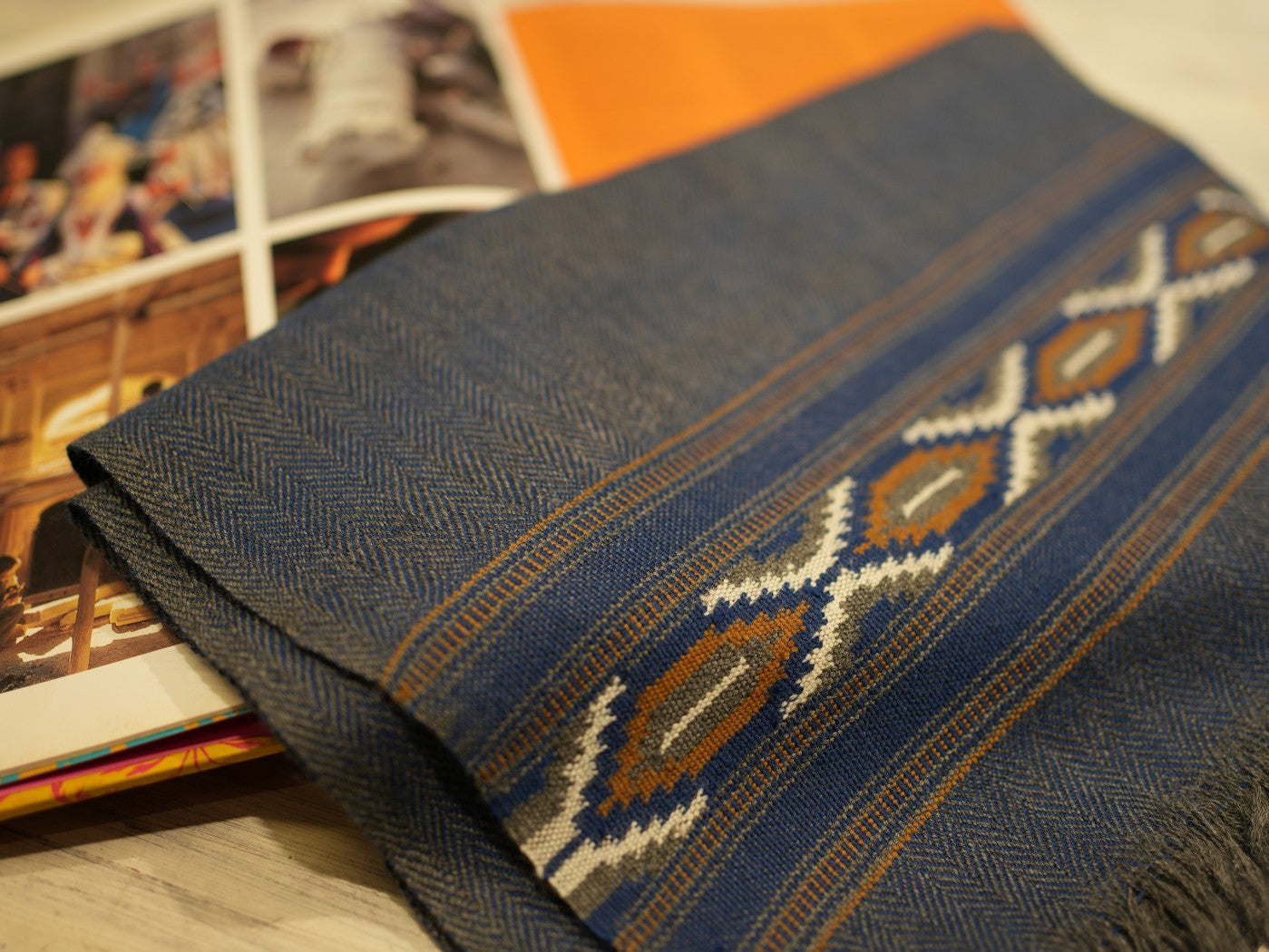 Swaroop Exclusive Design. Handloom unisex mufflers with kullu border in wool base have been hand-woven by the weavers of Kullu, Himachal Pradesh using their traditional techniques passed down from generation to generation. It keeps you warm and acts as a great finishing touch for your outfit. A must-have in your winter wardrobe.