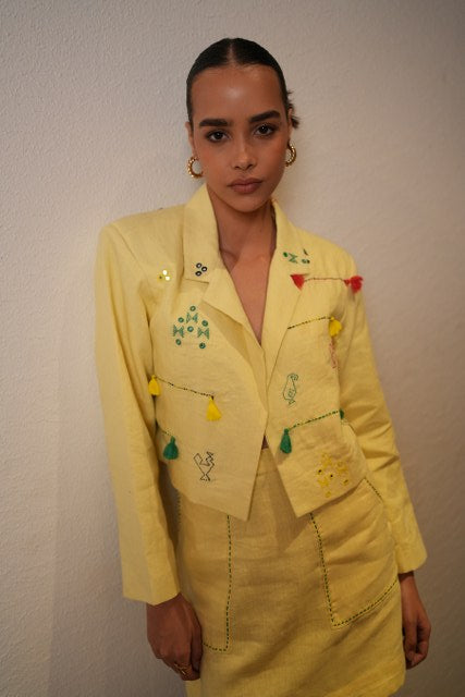 Perfect for pairing with our Yellow linen Blazer, it's a must-have addition to your collection.