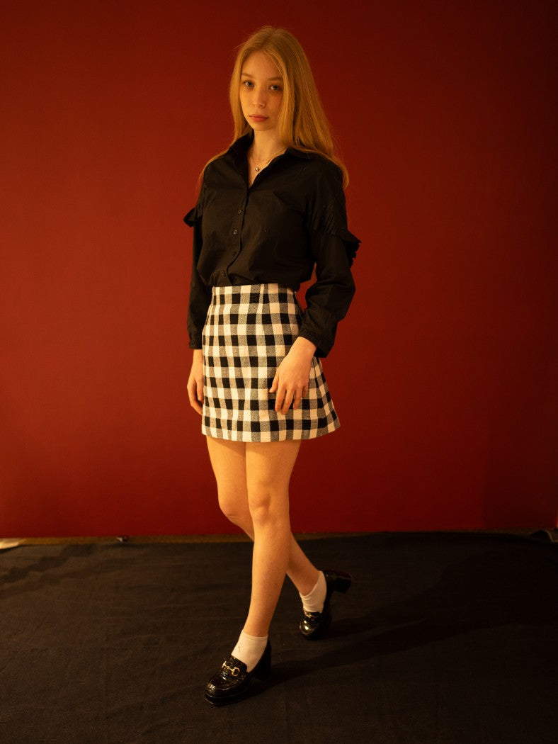 Swaroop Exclusive Designs. Featuring high-waist check skirt with invisible back zip fastening. Perfect for a casual occasion. Team it with a top or shirt for the perfect look.