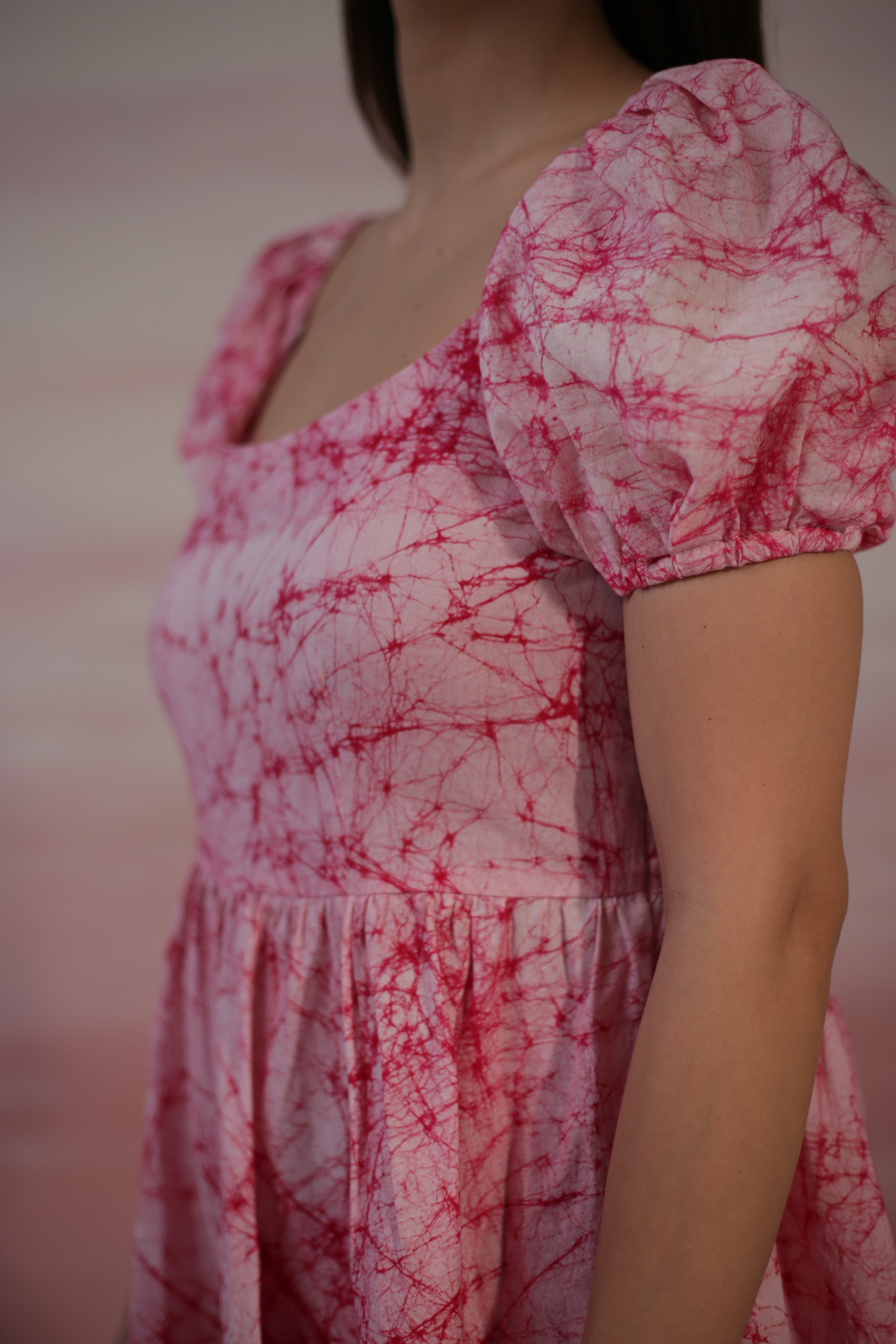 Swaroop Exclusive Design. Kim Dress is a fusion of Indian tradition and western wear. Featuring short dress in cotton base, enhanced with short puff sleeves. Perfect for your summer wardrobe. Wear it and flaunt it a little bit everywhere you go.