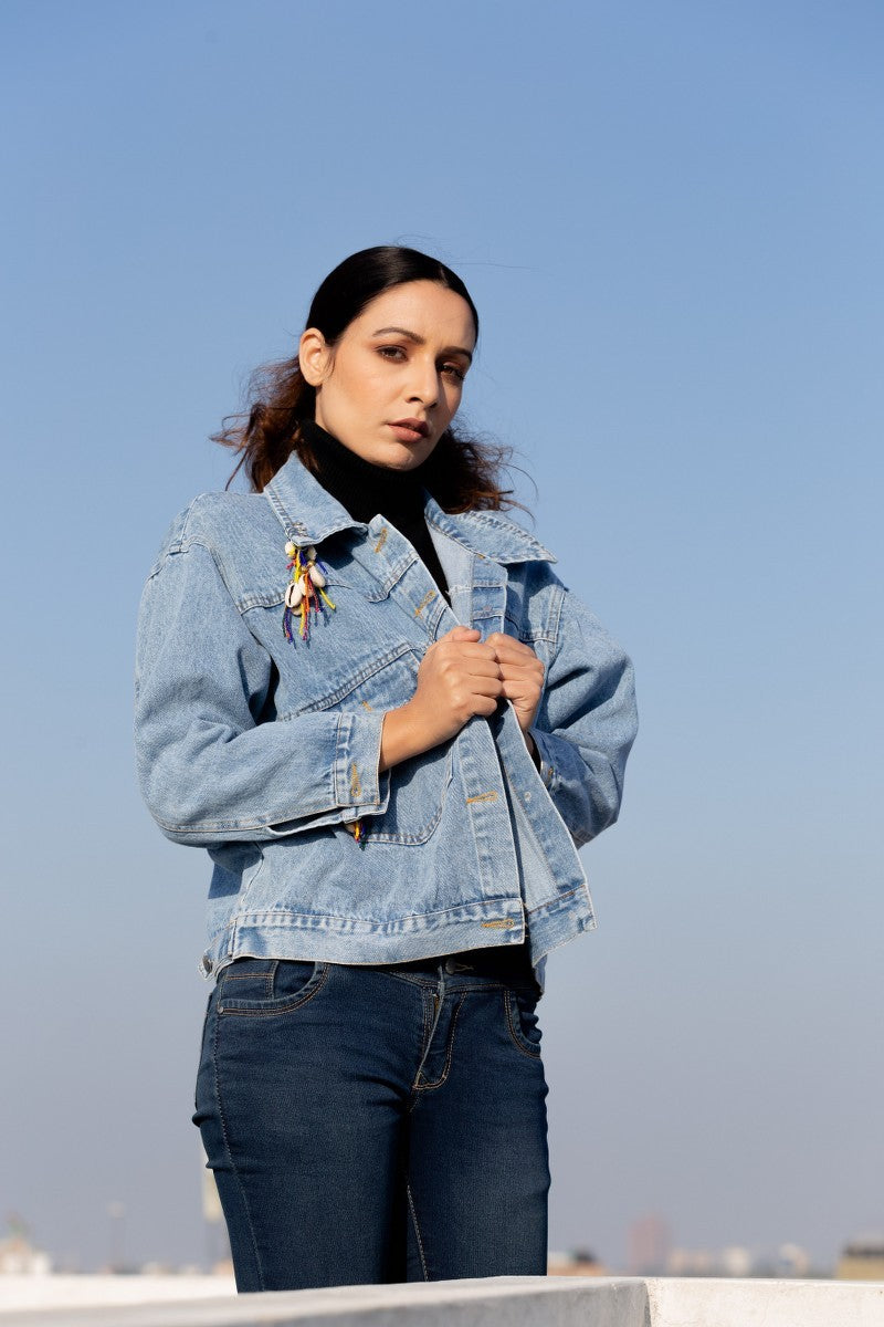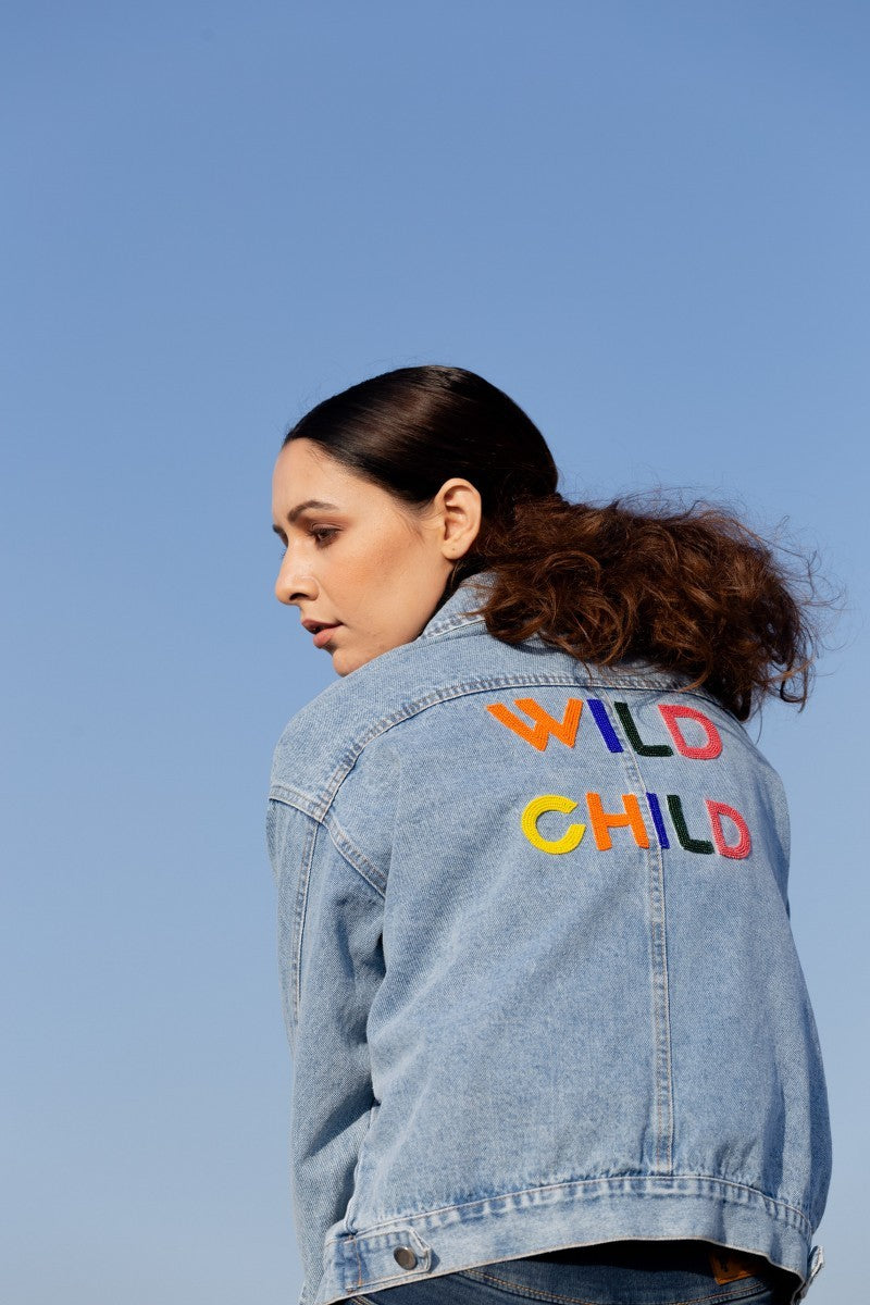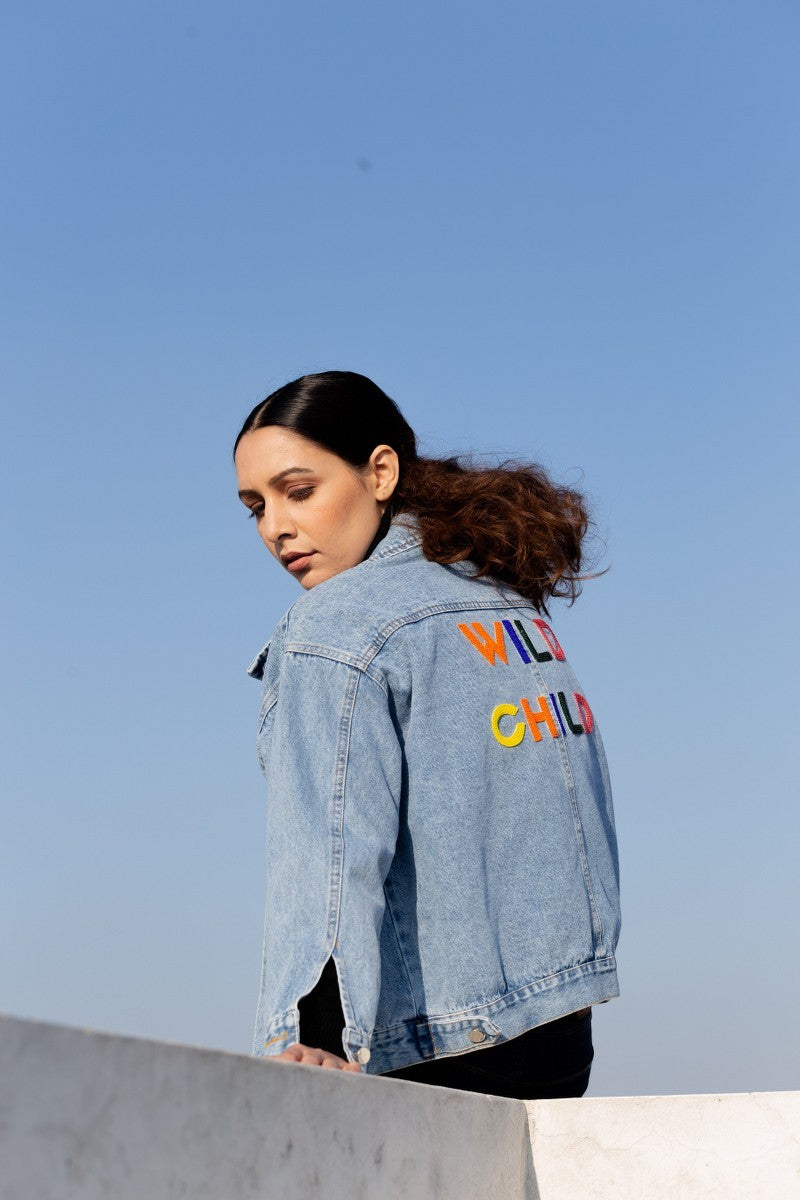 Swaroop Exclusive Design. The Wild Child is a street wear jacket inspired by Bonda tribe attire. The back is enhanced with ‘wild child’ typo being embroidered with beads. Plus, there are beautiful tassels made of shells and beads in the front for just the right pinch of detail.